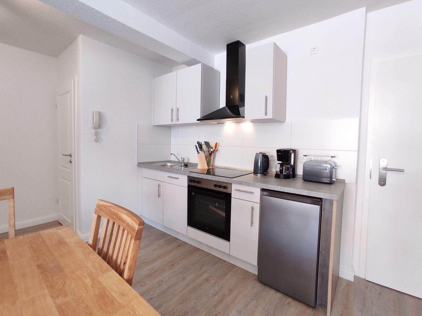 Die offene Küche ist mit allem ausgestattet, was Sie benötigen. Eine Spülmaschine übernimmt die lästige Arbeit nach dem Essen, während der Kühlschrank genügend Platz für Ihre Vorräte bietet. Kaffeemaschine, Wasserkocher und Toaster stehen bereit, um Ihnen den Start in den Tag zu versüßen. Ein Herd ermöglicht es Ihnen, Ihre Lieblingsgerichte zuzubereiten, falls Sie dies wünschen.