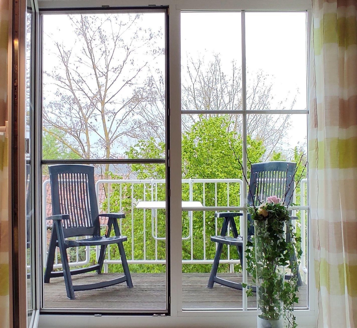 Genießen Sie entspannte Stunden auf dem Balkon, der mit zwei bequemen Balkonstühlen ausgestattet ist und einen schönen Blick auf die umliegende Natur bietet.