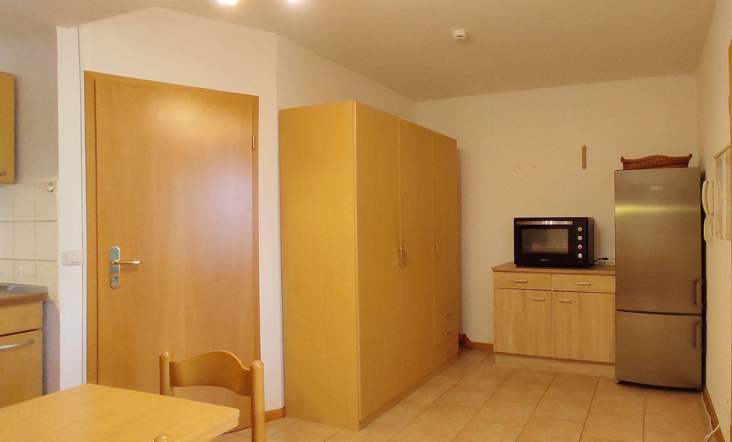 Die Wohnung verfügt über zwei Zimmer, darunter ein geräumiges Schlafzimmer mit einem einladenden Doppelbett, perfekt für erholsame Nächte. Im Schlafzimmer finden Sie auch einen Fernseher, der Ihnen gemütliche Abende im Bett ermöglicht. Zusätzliche Schlafmöglichkeiten bieten sich auf der komfortablen Schlafcouch im Wohnzimmer an. Ein bequemer Sessel rundet das Wohnzimmer ab, das ebenfalls mit einem Fernseher und einem Radio für Ihre Unterhaltung ausgestattet ist. Für gesellige Spielabende stehen Ihnen außerdem eine Auswahl an Büchern und Spielen zur Verfügung.