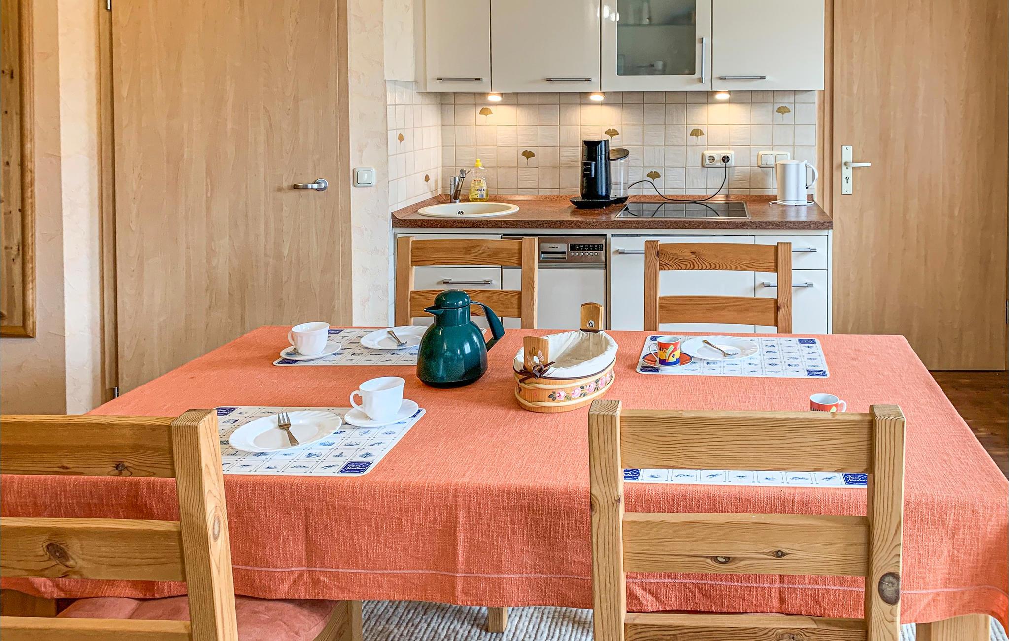 Beim Betreten der Wohnung haben Sie im großen Wohnschlafraum eine kleine Küche mit Ceranfeld und Geschirrspüler, den Essbereich und den einladenden Wohnraum mit einem bequemen Schlafsofa. Zwischen Bad und Schlafzimmer ist in die Nische geschickt ein geräumiger Schrank und Anrichte mit Mikrowelle plus Ofen eingebaut. Rechts davon ist das Duschbad und links das separate Schlafzimmer. Die Wohnung verfügt über einen Flachbild-Fernseher, CD Radio, Kaffeemaschine, Wasserkocher, Toaster, Mikrowelle etc., sodass Sie hier einen entspannten Urlaub verbringen können.