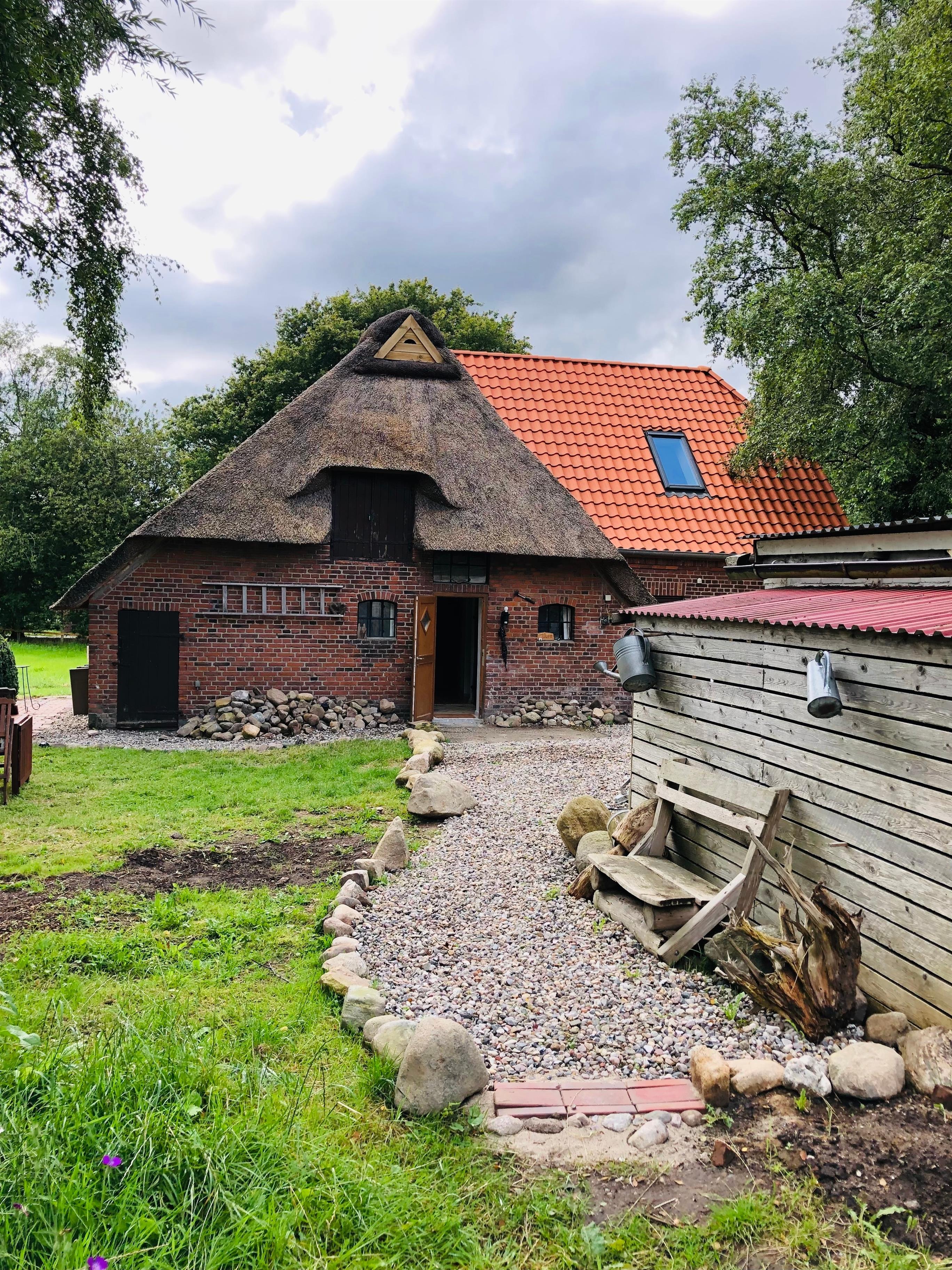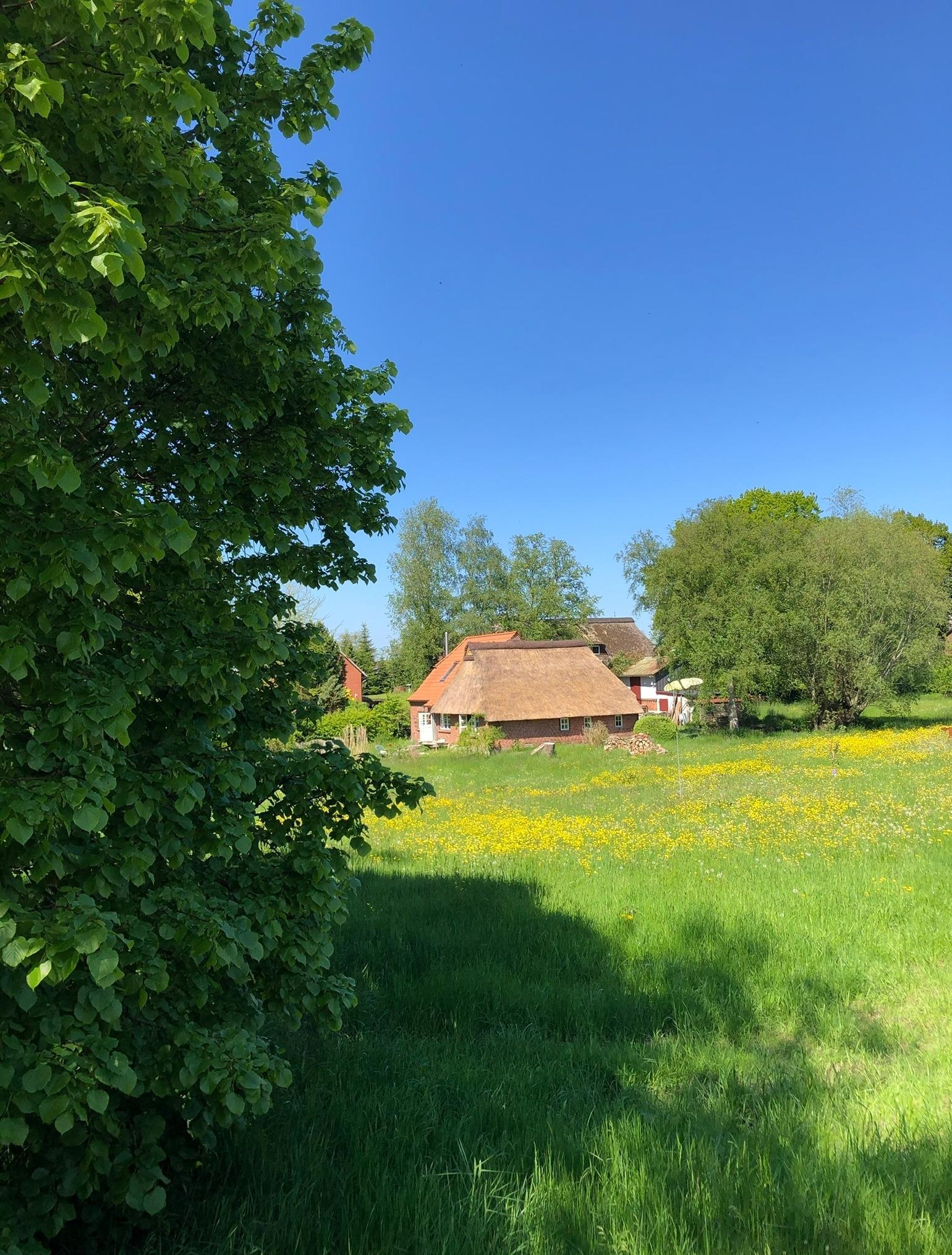 Unser Reetdachhaus „Haus Lieschen“ liegt in der Mitte von Goosefeld zwischen Birken und einer grünen blühenden Wiese. Das Haus wurde 2020/2021 umfassend und liebevoll kernsaniert.