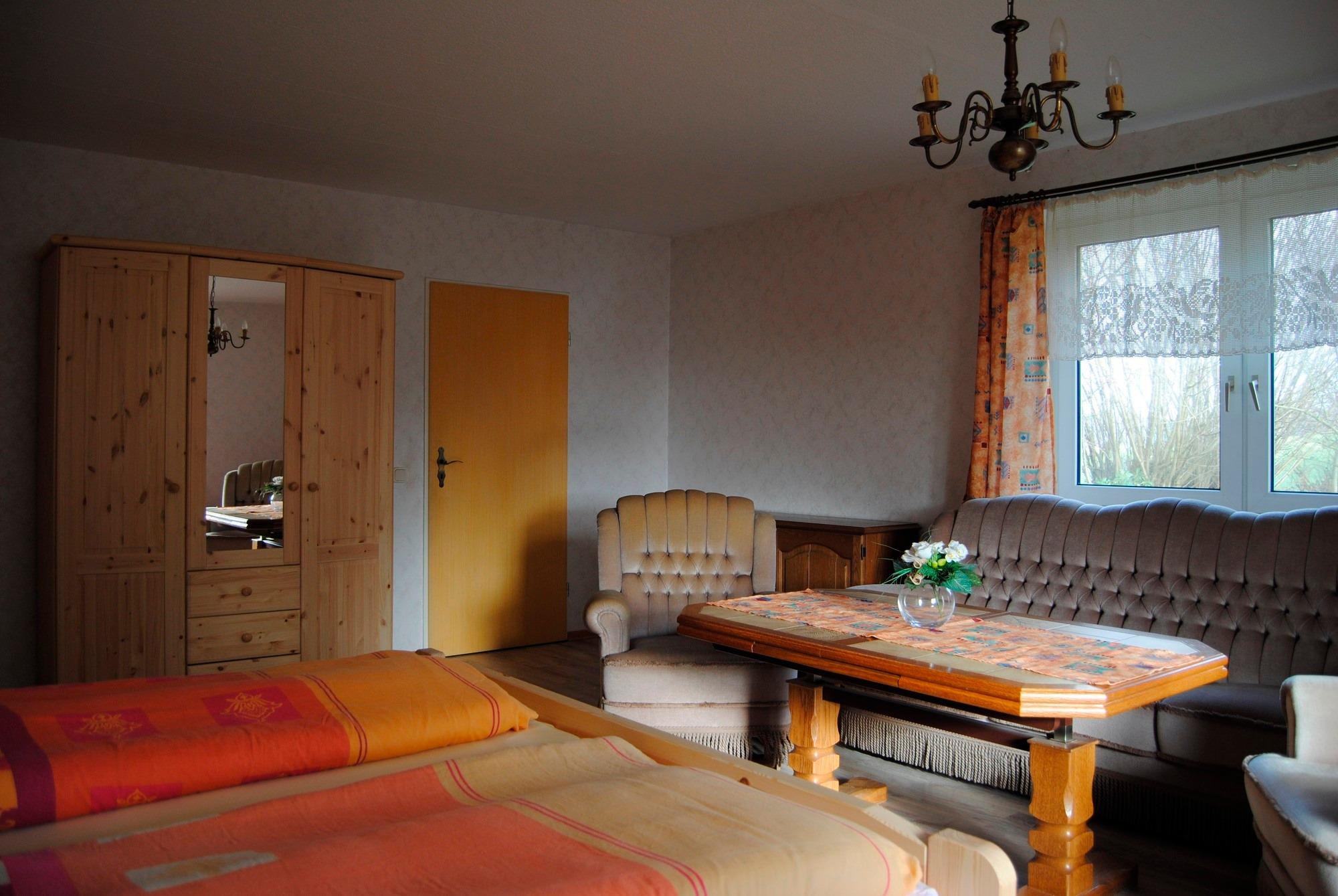 Das Ein-Zimmer-Appartement ist gemütlich eingerichtet und bietet Platz für maximal drei Personen und ist ca. 45m² groß. Das Zimmer ist mit einem Doppelbett (2 x 0,90m x 2,00m) und zwei Einzelbetten (0,90m x 2,00m) ausgestattet. Über den Winter wurden einige Renovierungsarbeiten durchgeführt, sodass das Zimmer jetzt mit allergikerfreundlichem Laminat ausgestattet ist. Das Appartement hat eine eigene Küche und ein eigenes Badezimmer mit Dusche und WC. Die Küchenzeile ist komplett mit Besteck und Geschirr bestückt und ist zusätzlich noch mit Kaffeemaschine, Toaster und Wasserkocher ausgestattet. Es besteht Zentralheizung, Heizkörper sind in jedem Raum zu finden.