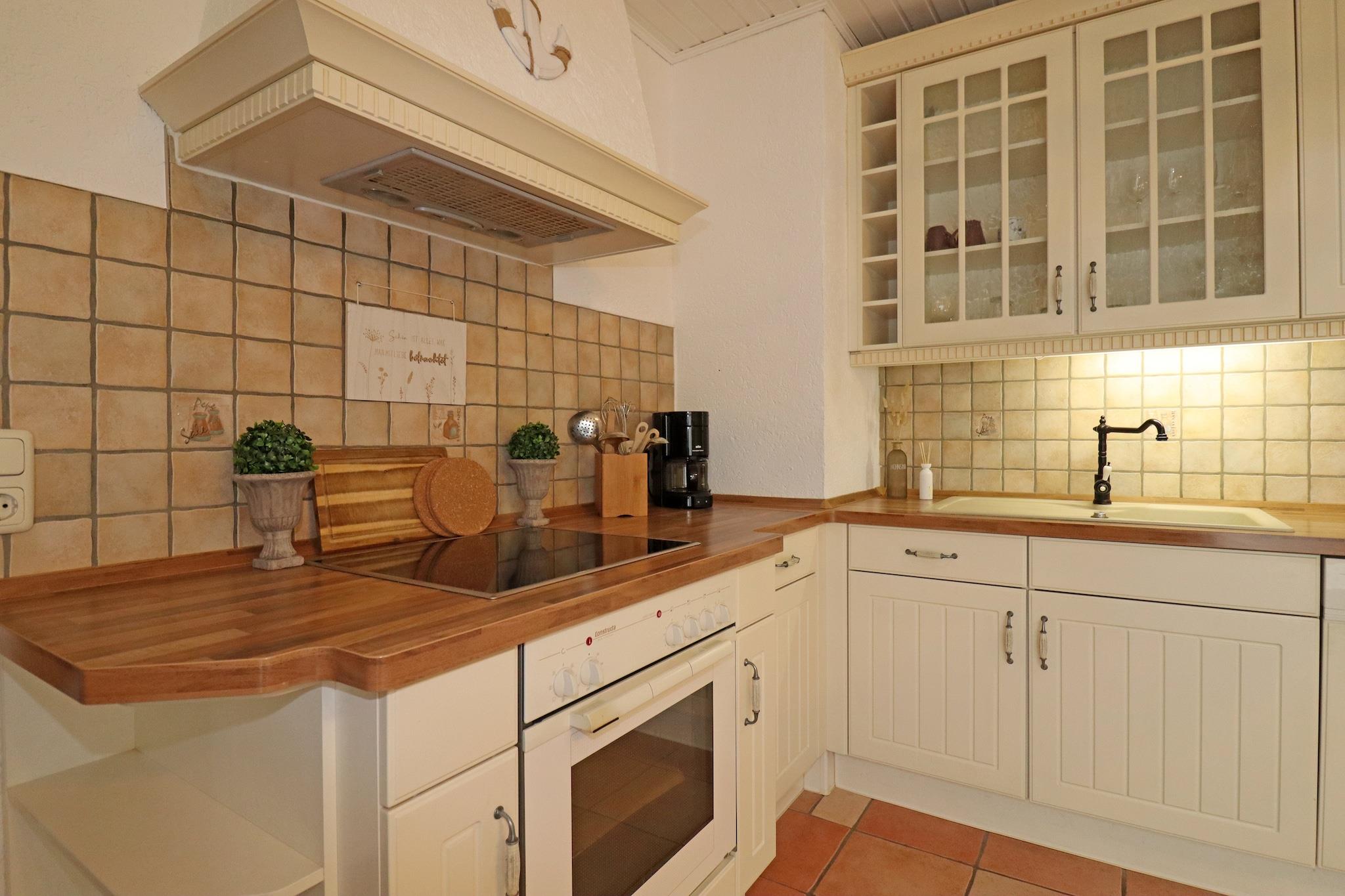 Parterre: (Eingang, Küche(Esstisch(4 Personen), Wasserkocher, Toaster, Kochherd(4 Kochplatten, Ceranfeld), Dunstabzugshaube, Kaffeemaschine, Backofen, Spülmaschine, Kühl-/Gefrierkombination), Schlafzimmer(Doppelbett(180 x 200 cm), TV), Badezimmer(Dusche(ebenerdige Dusche), Waschbecken, Toilette, Föhn), Flur) Terrasse, Gartenmöbel, Parkplatz