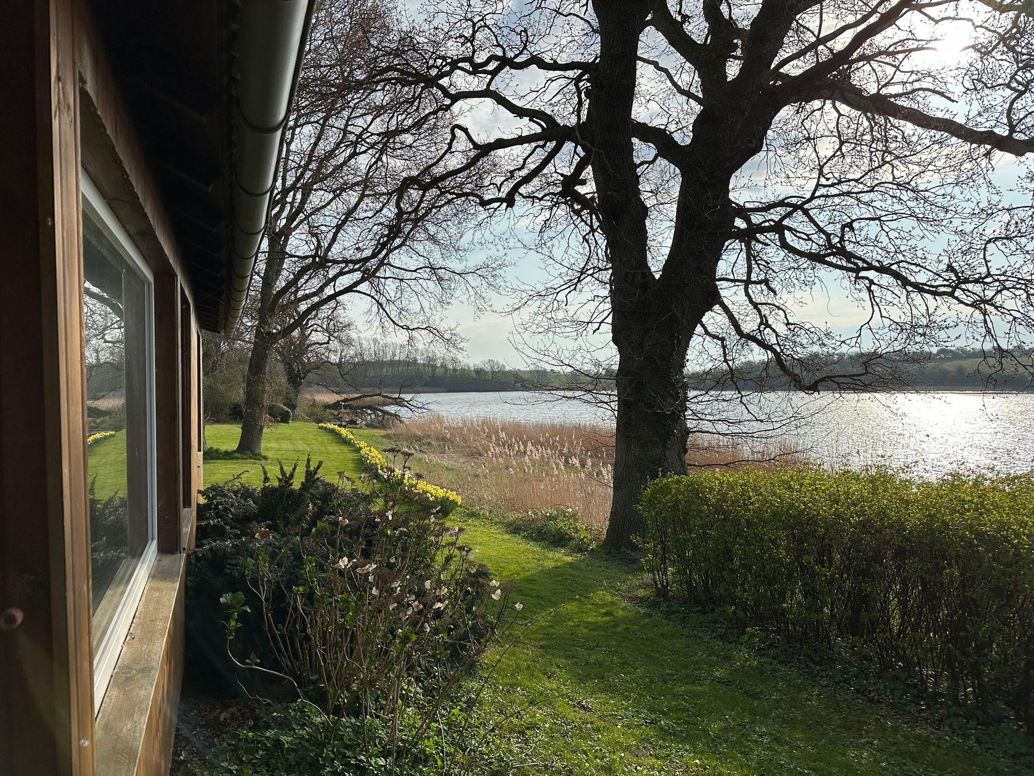 Gemütliches Ferienhaus am Grödersbyer Noor mit eigenem Bootssteg und Garten direkt am Wasser.