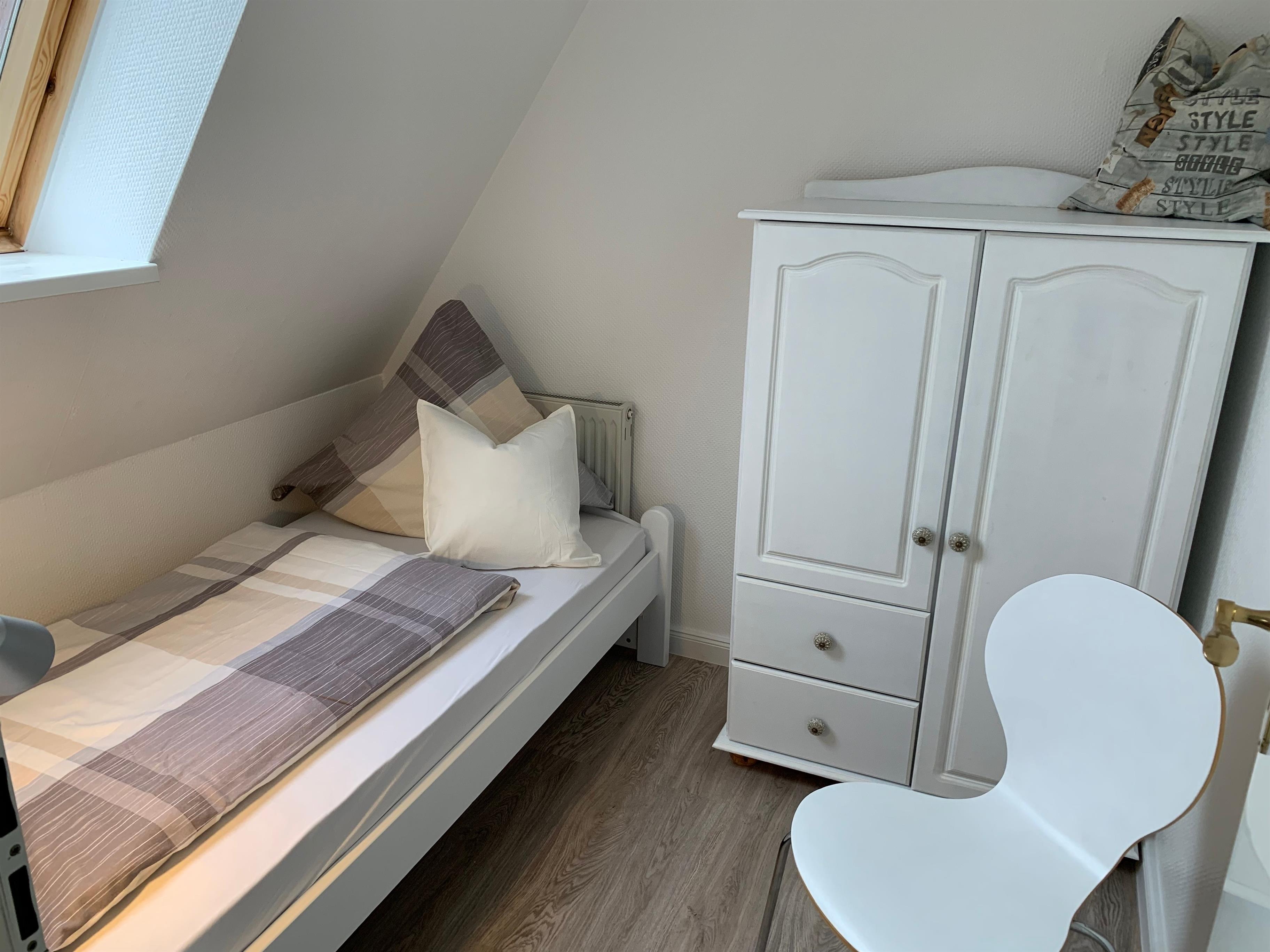 Unsere Ferienwohnung "Woge" liegt an der Schlei, ideal für 3 Personen, mit 2 Schlafzimmern ( 1 x Doppelbett 180 x 200 cm und 1 x Einzelbett 90 x 200 cm).