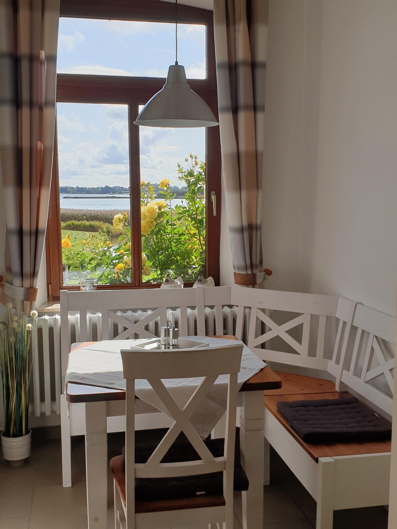 Von Wohnzimmer und Küche aus haben Sie Blick auf die Schlei und den Garten.