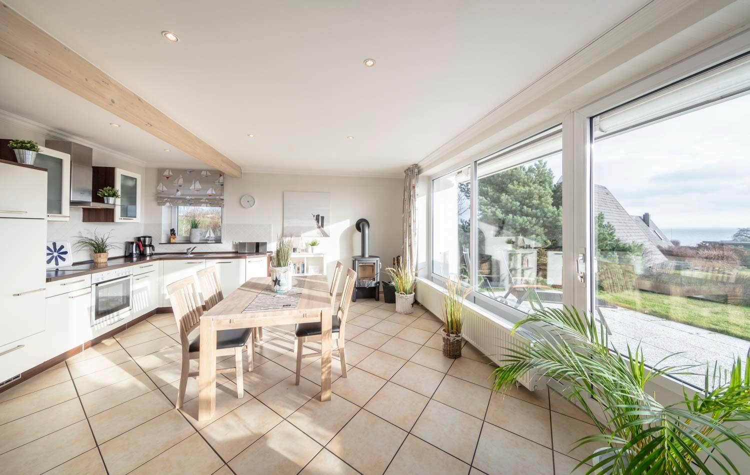 Hier ist nur eines wichtig: DU! Das hübsch bepflanzte Grundstück in Einzellage bietet 600 m² Platz für perfekten Holiday Spirit. Die großen Panoramafenster im Wohnzimmer geben den Blick aufs Meer frei.