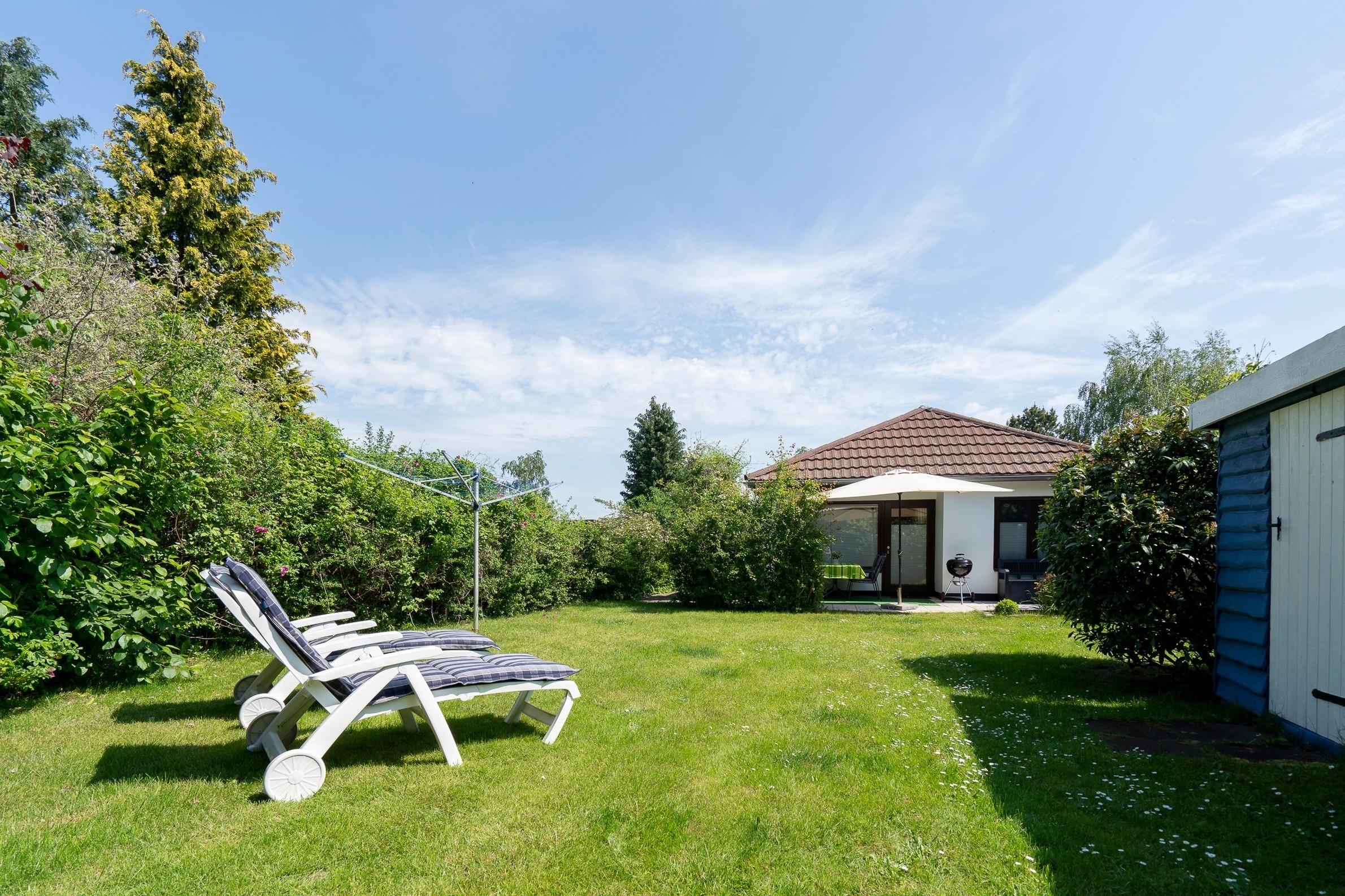 Herzlich willkommen in Ihrer 3-Zimmer Ferienwohnung für bis zu 2 Erwachsene und 2 Kinder. Diese befindet sich in einem Doppelbungalow auf einem 650 m² großem Grundstück.