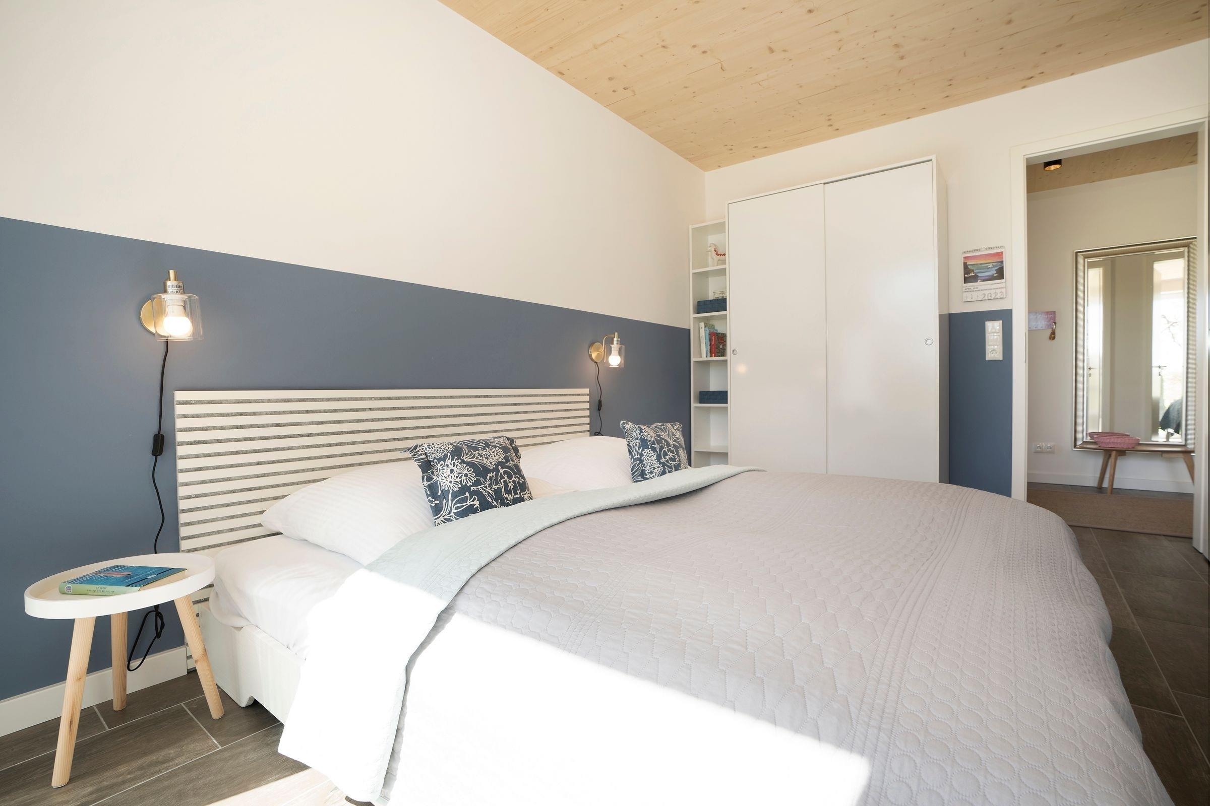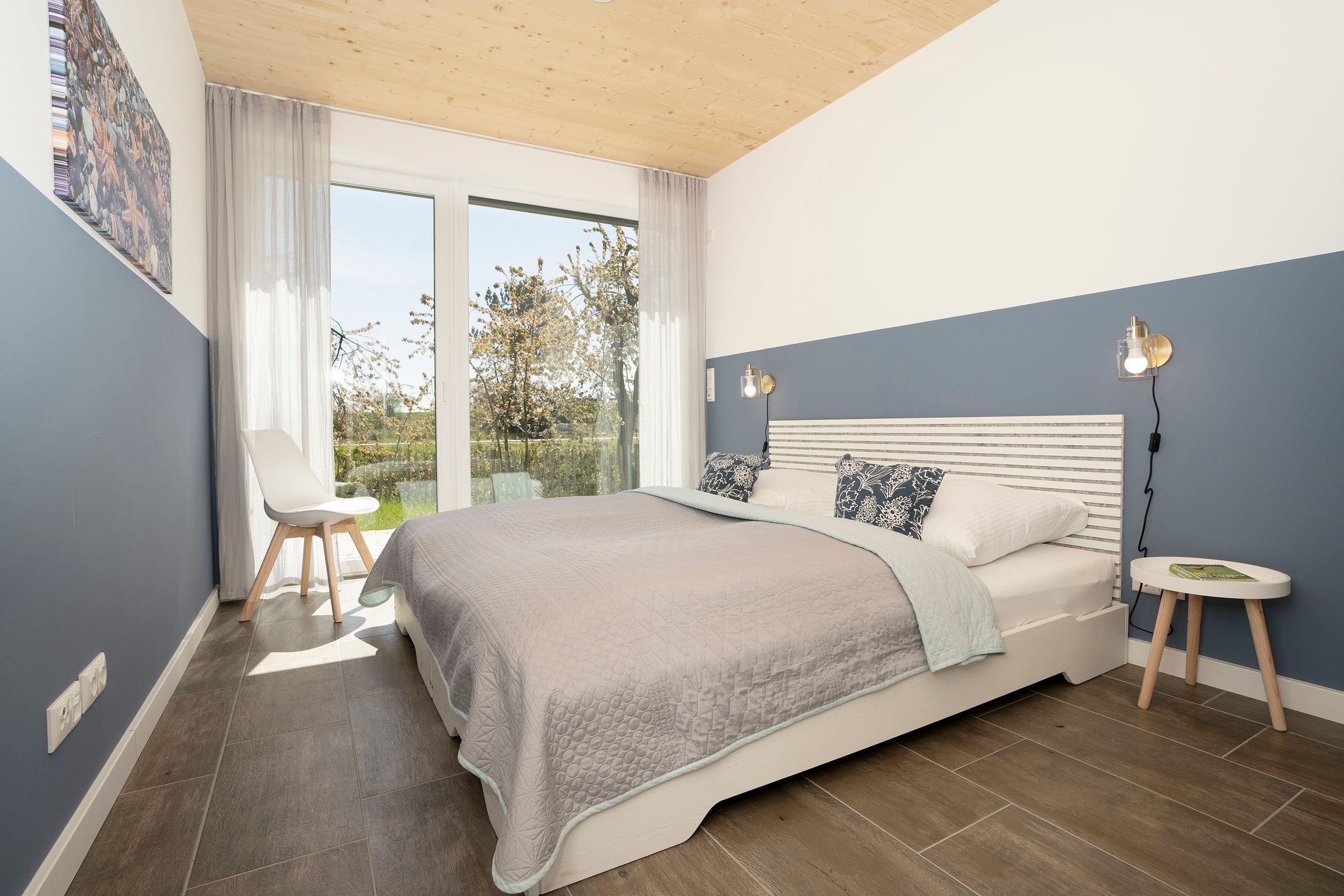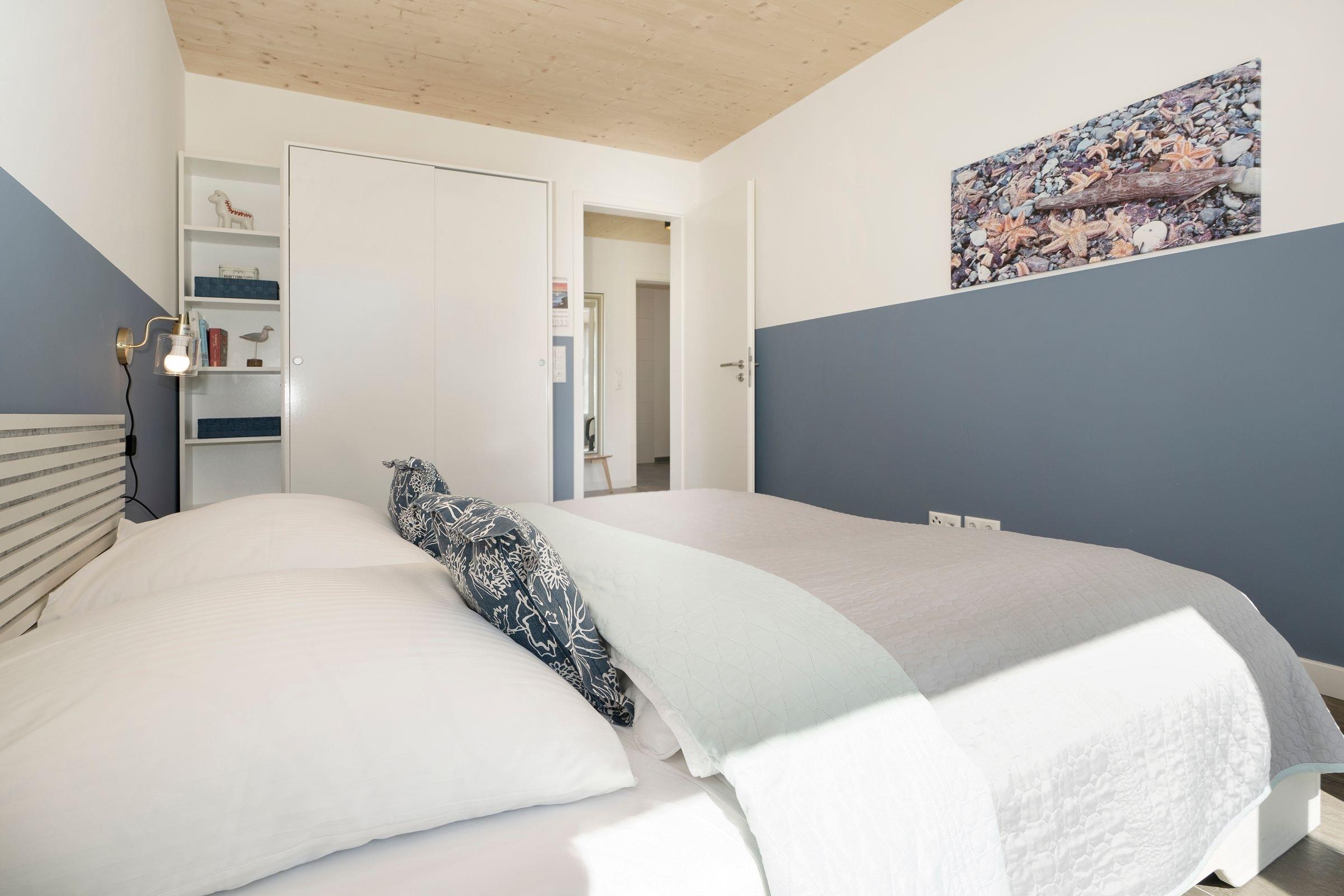 Abends können Sie sich dann im Erdgeschoss in eins der beiden Schlafzimmer zum Entspannen zurückziehen - diese sind mit einem Doppelbett (ca. 160x200cm) und 2 zusammenstehenden Einzelbetten (je 90x200cm) ausgestattet. Außerdem befindet sich hier das Tageslichtbad mit ebenerdiger Dusche, in dem Sie erfrischt in den Tag starten können. Ein absolutes Highlight in diesem Ferienhaus ist die hauseigene Sauna.