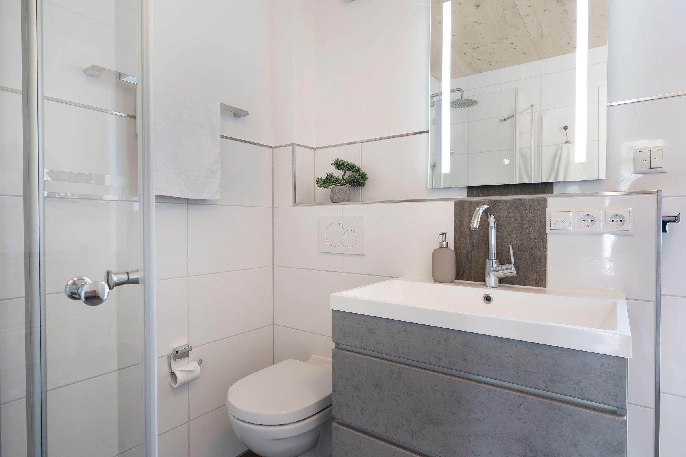 Im Obergeschoss befindet sich ebenfalls ein Gäste-WC.