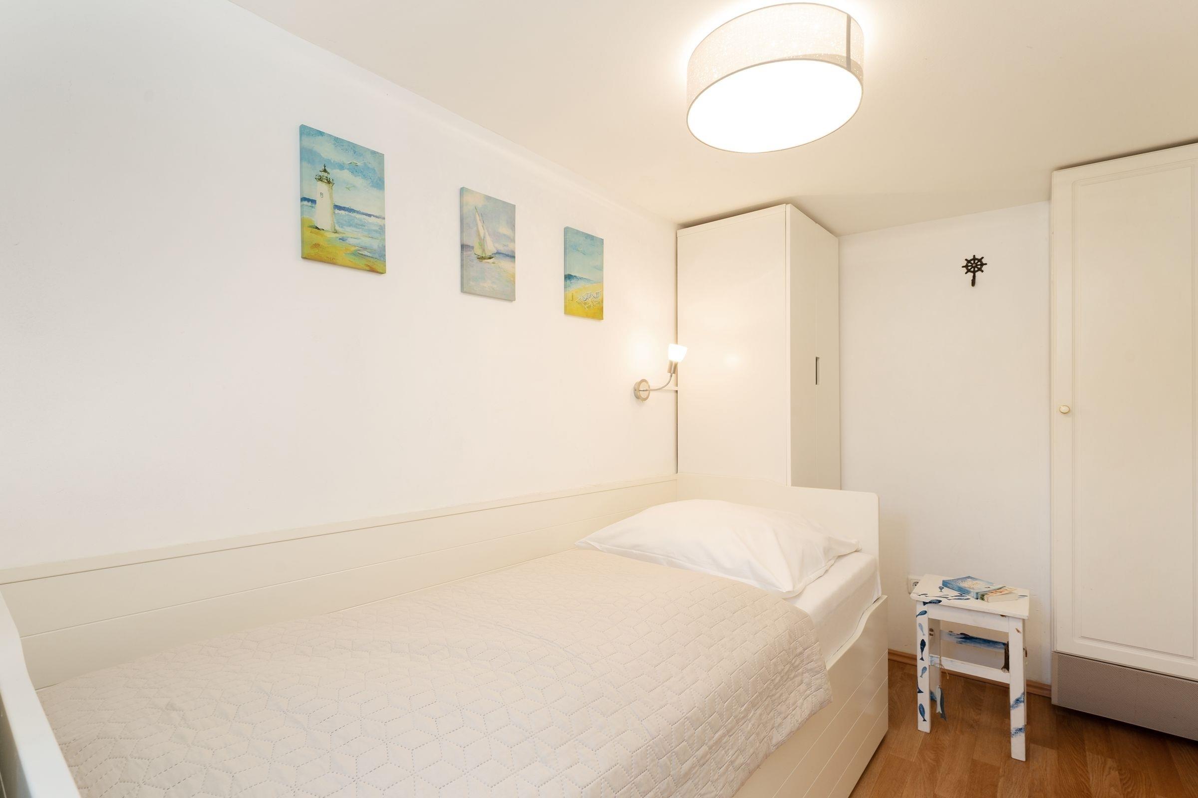 Schlafzimmer 2: Einzelbett (90x200 cm), Platz für Babybett vorhanden