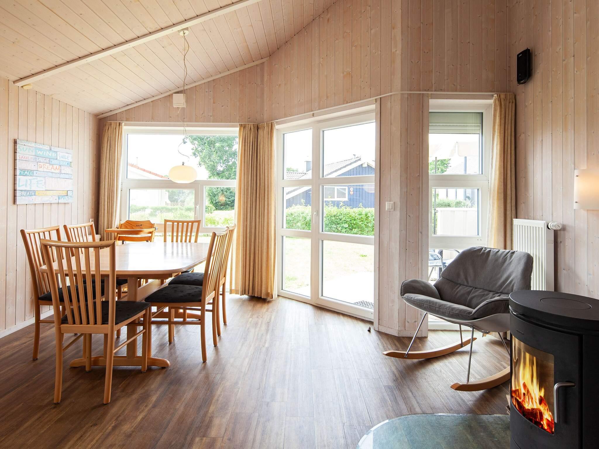 Dieses familienfreundliche Ferienhaus wurde 2008 im OstseeStrandpark Grömitz, direkt am Lensterstrand gebaut und wird fortlaufend modernisiert und instandgehalten. Das komfortable Qualitätsholzhaus in dänischer Bauweise verfügt über einen Whirlpool. Die großen Fenster, sowie die Holzwände und Dachschrägen, sorgen für eine gemütliche, einladende Atmosphäre. Zum Haus gehören ein Wohn-/Esszimmer mit ca. 23 m², 2 Schlafzimmer, ein Badezimmer mit Dusche und Whirlpool, sowie eine kleine Pantryküche. Die nach Süden ausgerichtete Terrasse hat den Zugang vom Wohn-/Esszimmer. Panoramafenstern, Möbeln im modernen, skandinavischen Design und holzverkleideten Wänden und Dachschrägen ein einladendes Erscheinungsbild. Ihnen stehen 2 Schlafzimmer, eine Schlafcouch im Wohnzimmer sowie ein Kinderbett und ein Hochstuhl zur Verfügung. Entspannen können Sie sich herrlich im Whirlpool, um anschließend die mollige Wärme des Holzofens oder einen guten Film im Fernseher mit SAT-Empfang zu genießen. Vom Wohnzimmer aus gelangen Sie auf die teils überdachte und abgeschirmte Terrasse, die mit Gartenmöbeln und Grill zu schönen Sonnenstunden einlädt. Am Haus befindet sich auch eine Ladestation für Ihr Elektroauto.