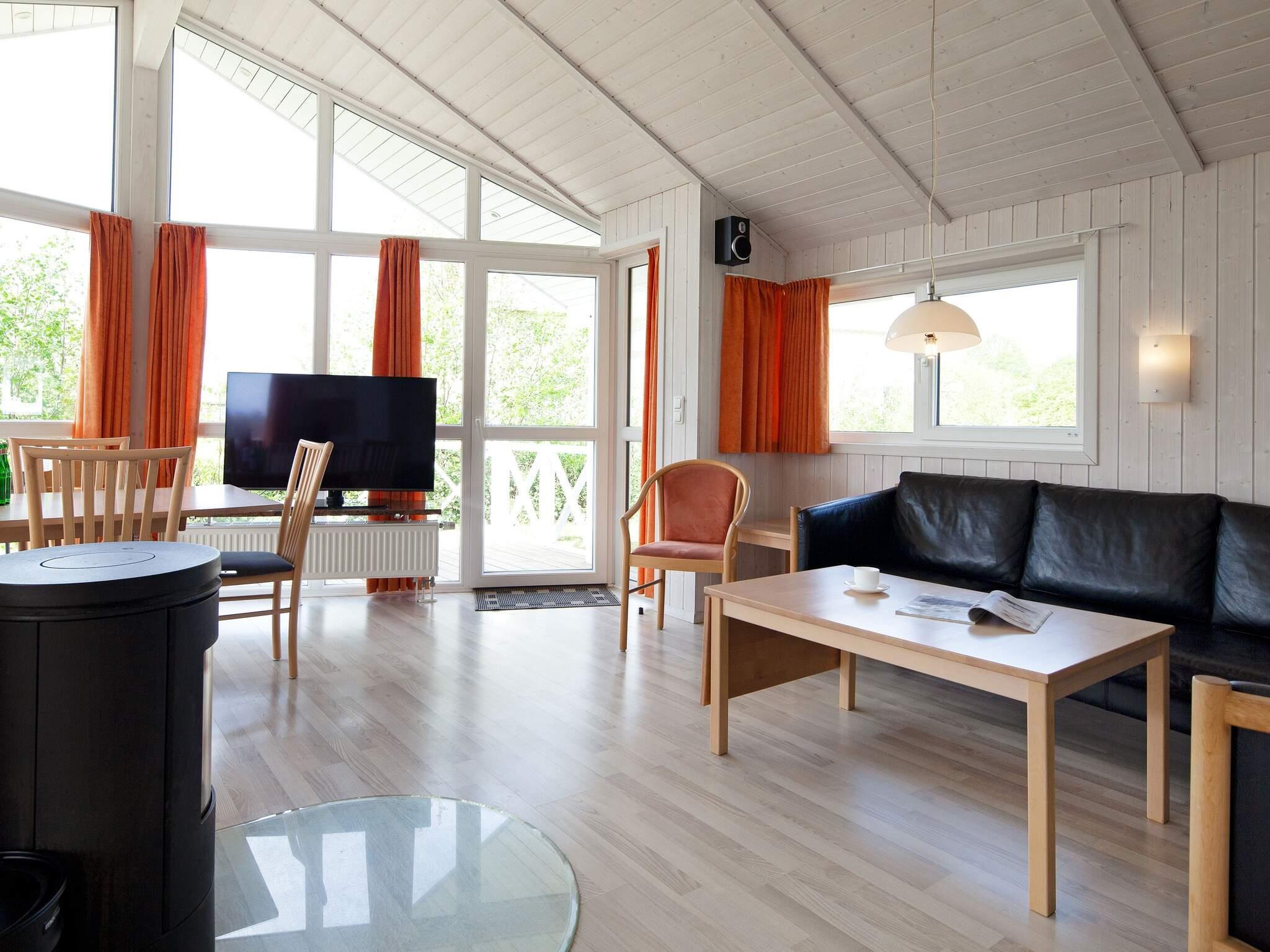 Dieses herrliche Ferienhaus wurde 2011 im dänischen Baustil im OstseeStrandpark Grömitz errichtet. Die moderne Einrichtung mit Panorama-Fensterpartien, hellen, holzverkleideten Wänden und Dachschrägen verleihen dem Haus eine gemütliche und freundliche Atmosphäre. Im Wohnzimmer können Sie es sich an kühleren Abenden am wohlig warmen Holzofen oder vor dem SAT-TV gemütlich machen. Zu der Hausausstattung gehört außerdem eine Stereoanlage mit CD-Player, ein Hochstuhl und ein Kinderbett.