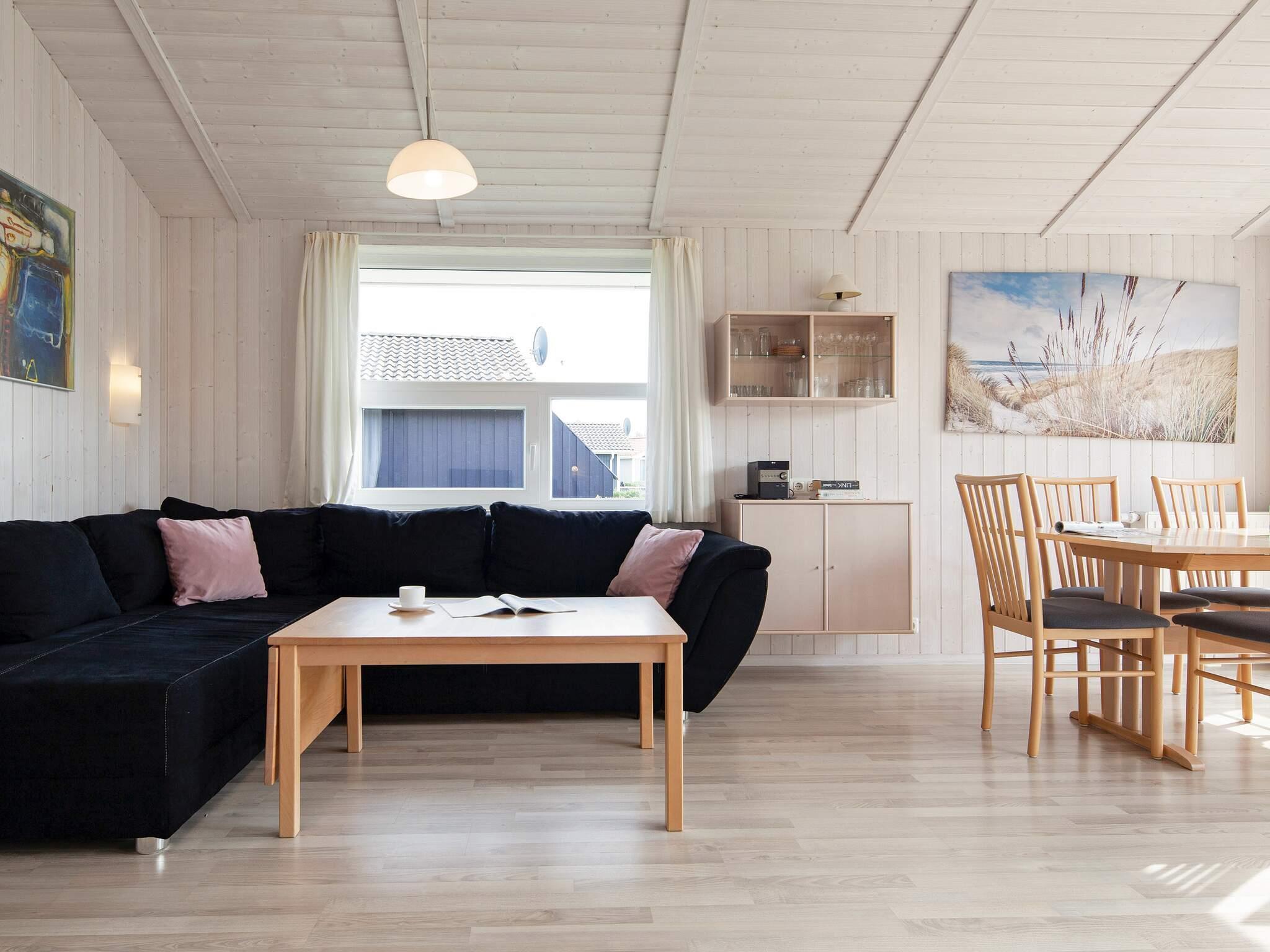 Das Haus verfügt über zwei Schlafzimmer, ein schönes, helles Wohnzimmer, in dem auch ein Essplatz untergebracht ist, eine gut ausgestattete Küche mit u.a. einem Geschirrspüler sowie ein ansprechendes Badezimmer mit Duschkabine und Fußbodenheizung. Die großen Fensterflächen, die modernen Möbel im skandinavischen Design sowie die Holzwände und hohen Dachschrägen sorgen für eine großzügige, gemütliche und einladende Atmosphäre.