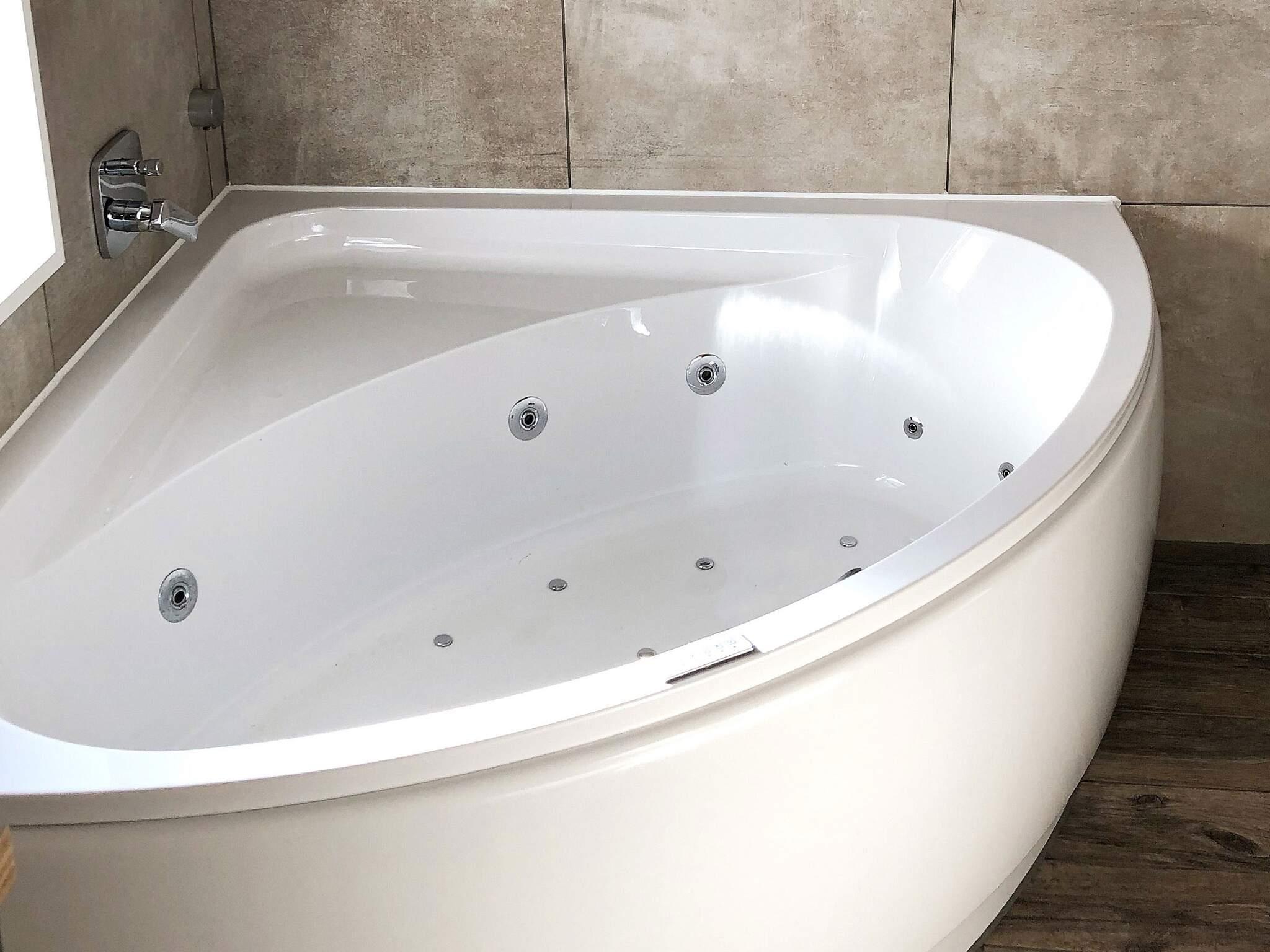 Nach einem langen Spaziergang in der schönen Natur können Sie sich im hauseigenen Whirlpool entspannen oder in der Sauna aufwärmen lassen. Außerdem gibt es auch eine mit Trockner kombinierte Waschmaschine. Das Haus liegt auf einem Naturgrundstück und vom Wohnzimmer aus gelangen Sie auf die große, teils überdachte Terrasse, die zu entspannenden Stunden einlädt, beispielsweise zum Sonnenbaden oder zu einem gemütlichen Grillabend im Kreise der Familie.