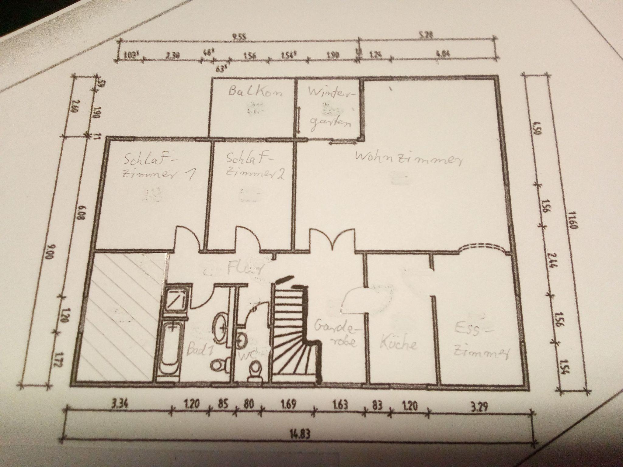 Die Wohnung liegt im ersten Stock eines großen Einfamilienhauses. Im Erdgeschoss befinden sich noch drei kleine dauerhaft vermietete Einliegerwohnungen.