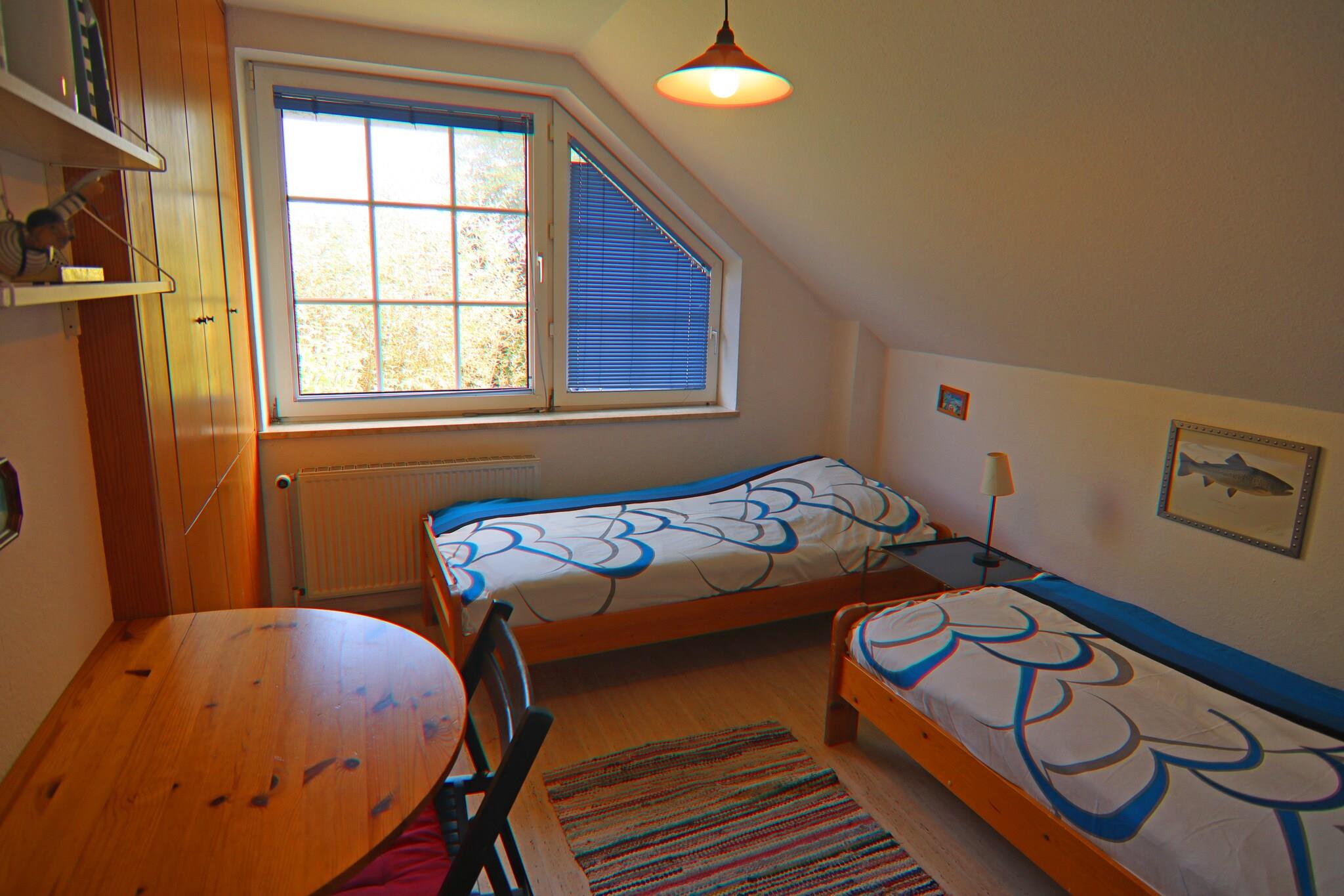 Parterre: (Küche(Wasserkocher, Toaster, Kochherd(4 Kochplatten, elektrisch), Dunstabzugshaube, Kaffeemaschine, Backofen, Mikrowelle, Spülmaschine, Kühl-/Gefrierkombination), Wohn/Esszimmer(TV, Esstisch(5 Personen), Sitzecke, DVD-Spieler, Radio, CD-Spieler), Badezimmer(Dusche, Waschbecken, Toilette), Flur) In der 1. Etage: (Schlafzimmer(Doppelbett king size, TV), Schlafzimmer(2x Einzelbett), Badezimmer(Dusche, Waschbecken, Toilette, Waschmaschine, Föhn)) Heizung, Terrasse(überdacht), Garten(alleinige Nutzung), Fahrradabstellraum, Gartenmöbel, Liegen, Parkplatz, Sonnenschirm