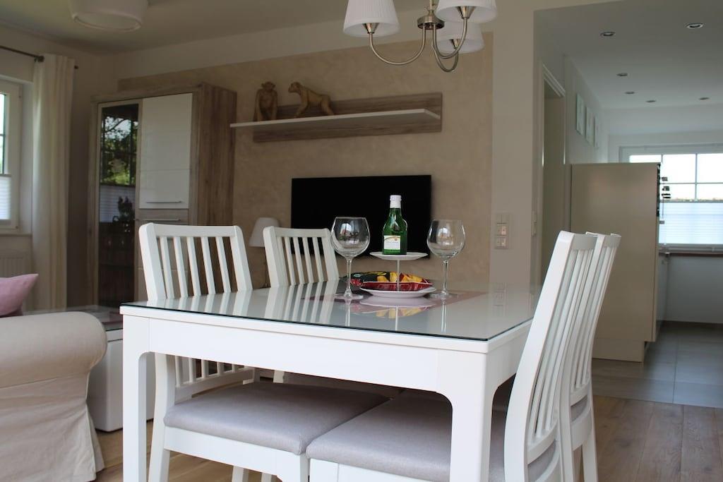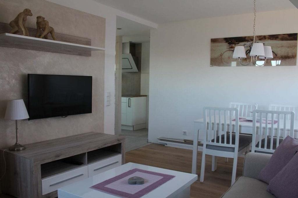 Moderne Ferienwohnung in Grömitz mit 2 Schlafzimmern, Balkon und Garten, ideal für einen erholsamen Urlaub mit WLAN und Grillmöglichkeiten.
