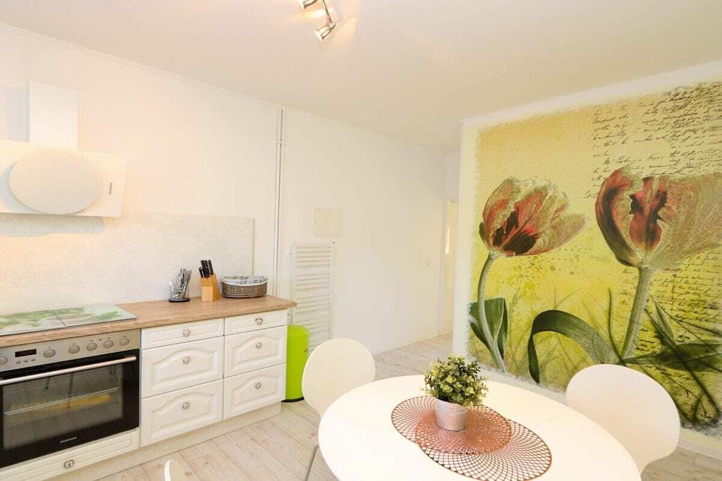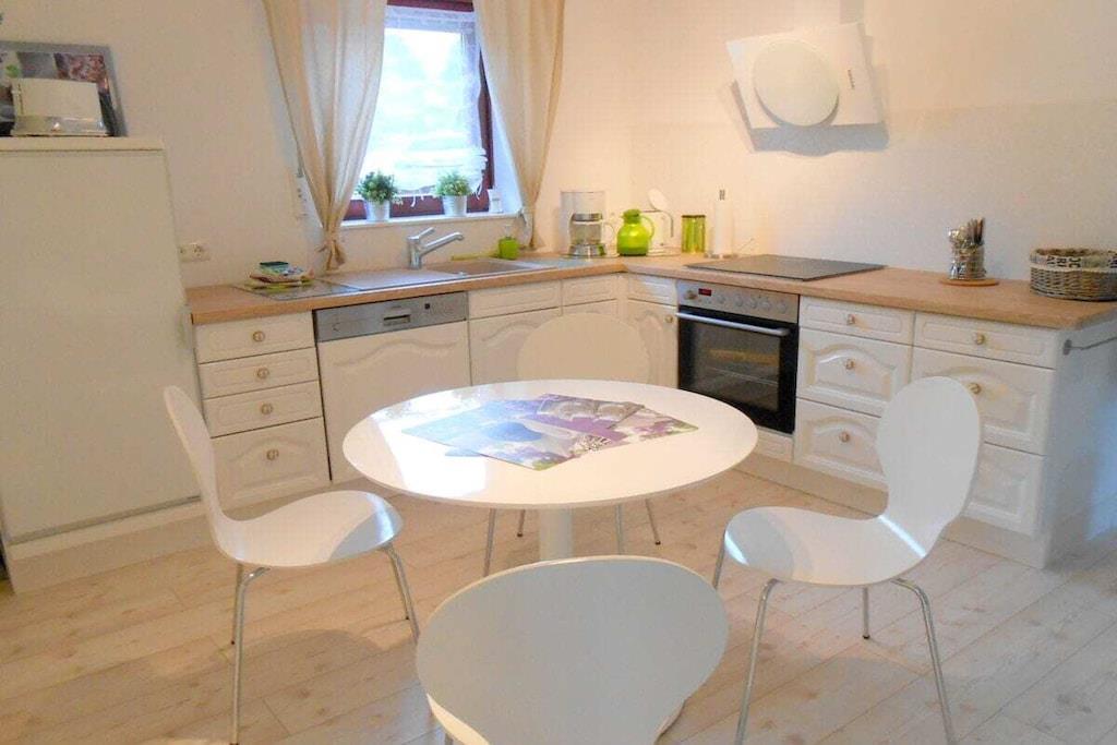 Freuen Sie sich auf ein sehr schönes, modernes Ferienhaus, nur 250 Meter vom feinsandigen Grömitzer Strand entfernt. In ruhiger Lage, mit wunderschönen Blick auf die Ostsee, eigenem Strandkorb am Strand und Platz für 1- 4 Person Dieses komplett renoviert und neu eingerichtete Ferien-Endhaus verteilt sich auf großzügige 100 qm. Im EG befindet sich die voll ausgestattete Küche m. 1. Esstisch, großem Kühlschrank, Umluft Backofen, Cerankochfeld, Geschirrspüler, Mikrowelle, Wasserkocher uvm. Ein neues Tageslichtbad mit 1. WC , bodentiefer Dusche 100x150cm , gr. beleuchteter Spiegel und Einbauradio. Ein geschmackvoll eingerichtetes Wohn- und Esszimmer mit 2. Esstisch, einem gr. Flachbild Sat TV , Zugang auf die überdachte Terrasse mit Garten, eigenen Grill und wunderschönen Blick auf die Ostsee. Im 1. OG befindet sich ein großes Schlafzimmer mit einem Bockspringbett 180x200 mit 2 Matratzen, einem großen Schwebetürenschrank und Zugang auf dem Balkon mit tollen Meerblick. Im 2. Schlafzimmer befinden sich 2 Einzelbetten von je.90x200 einen Kleiderschrank sowie einen einem begehbaren Kleiderschrank . Das 2. Tageslichtbad ist mit einer Badewanne, Waschbecken und 2. WC ausgestattet. Für unsere kleinen Gäste steht ein Massivholz Kleinkinderbett & ein Hochstuhl zur Verfügung. Die Fenster lassen sich überwiegend elektrisch verdunkeln. Eine Waschmaschine ist vorhanden. Die WLAN Nutzung, der Strandkorb am Strand und ein PKW Stellplatz auf dem Hof, sind inkl.. Das Haus befindet sich in einem 30 h/km Gebiet mit Spielplatz in ca. 200 Meter