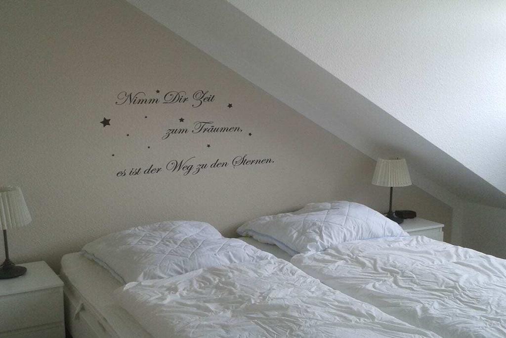 Komfortable Ferienwohnung für maximal 4 Personen. Neben einem großzügig kombinierten Wohn-/Essbereich erwartet Sie eine moderne Einbauküche inkl. Geschirrspüler und Mikrowelle sowie ein geräumiges Badezimmer. Die Ferienwohnung verfügt über zwei getrennte Schlafzimmer. Im Wohnzimmer ist ein Flachbildschirmfernseher (32 Zoll) installiert. Eine Internetflatrate ist freigeschaltet. Abgehend vom Wohnzimmer befindet sich ein nach Süd/Westen ausgerichteter Balkon. Eine Bücher-, Spiele- und DVD Sammlung und Kinderhochstuhl und Reisebett sind vorhanden. PKW Stellplatz direkt vor der dem Haus. Nichtraucherwohnung, keine Haustiere.