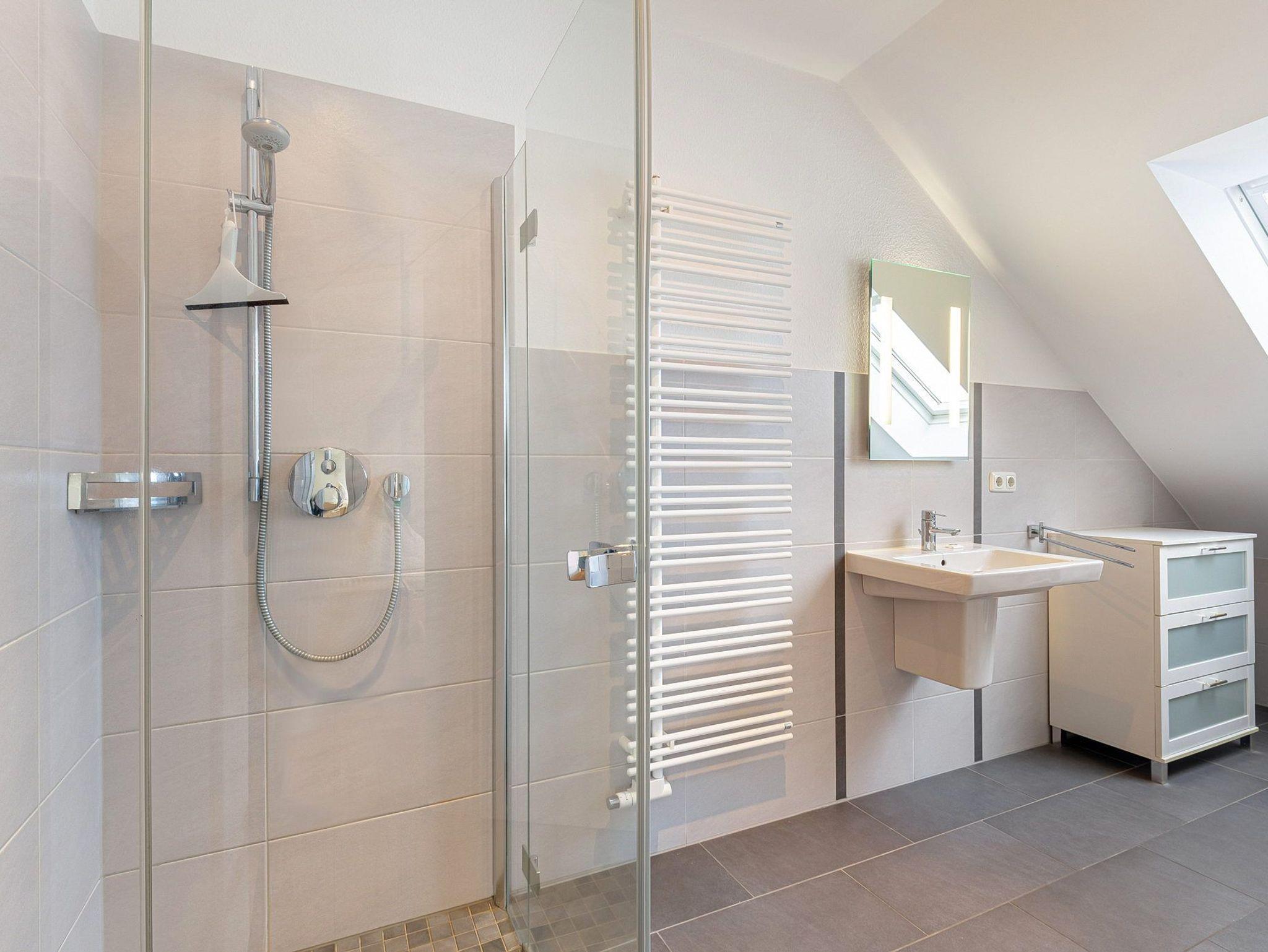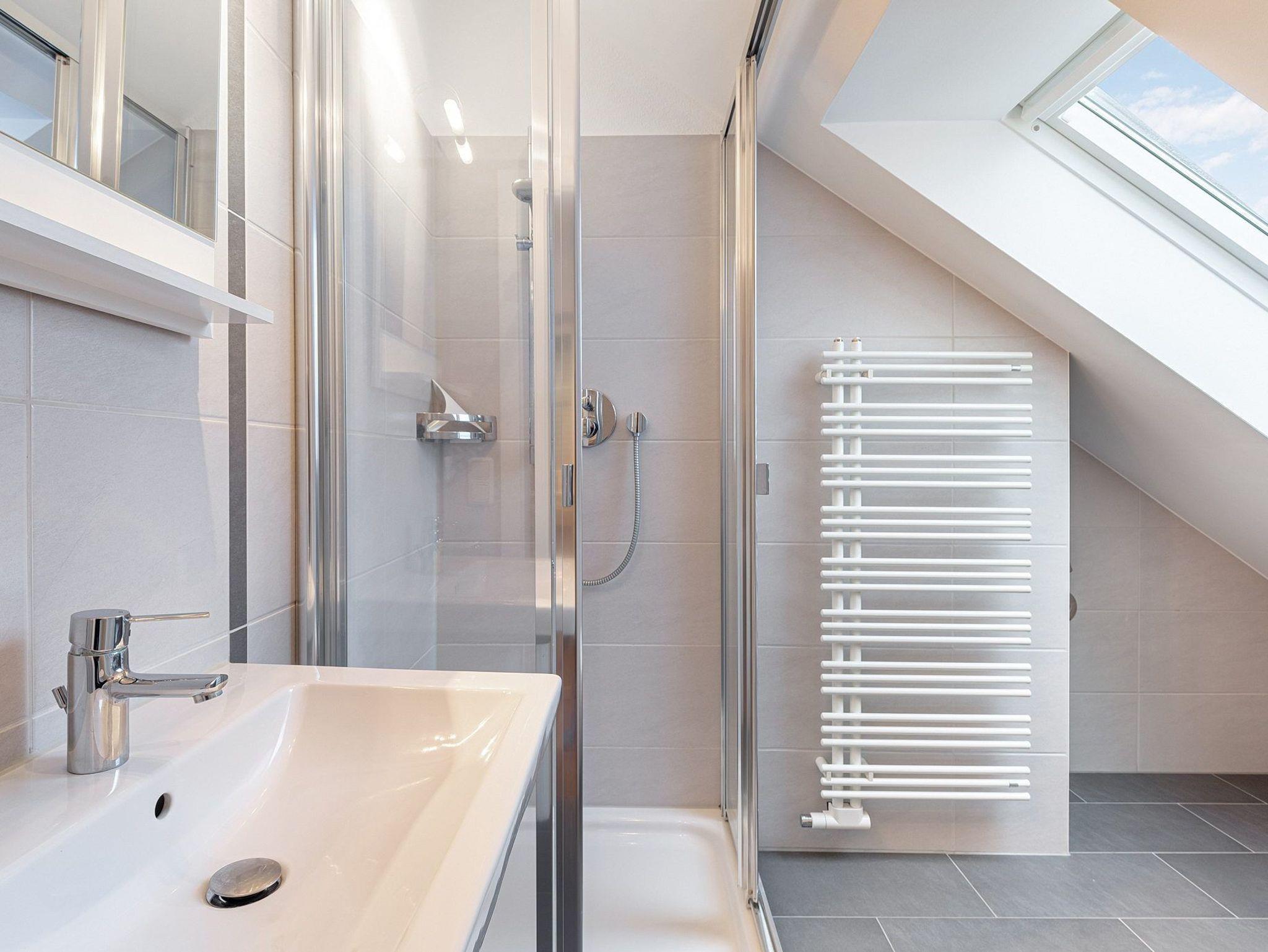 Die Wohnung verfügt über 2 moderne Tageslichtbädern auf beiden Stockwerken jeweils mit Dusche, Toilette und Waschbecken.