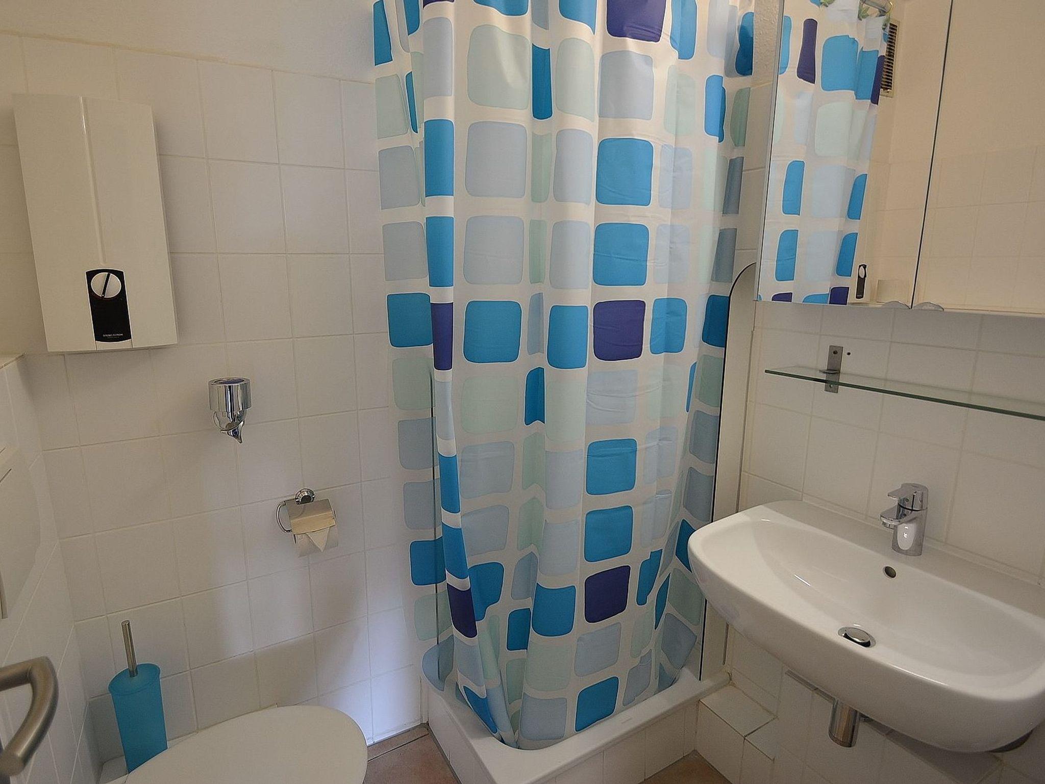 Kostenloser PKW-Stellplatz (sehr eng) in der Tiefgarage (max. Höhe: 1,90m) direkt am Haus. Schöner Balkon in süd-östliche Richtung mit Meerblick. Eine Waschmaschine und ein Trockner befinden sich im Haus und können gegen Gebühr genutzt werden. 2 Abstellplätze im geschlossenem Fahrradraum (Gemeinschaftseigentum).