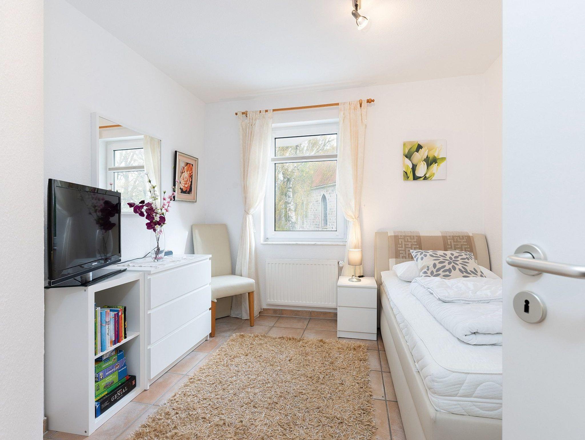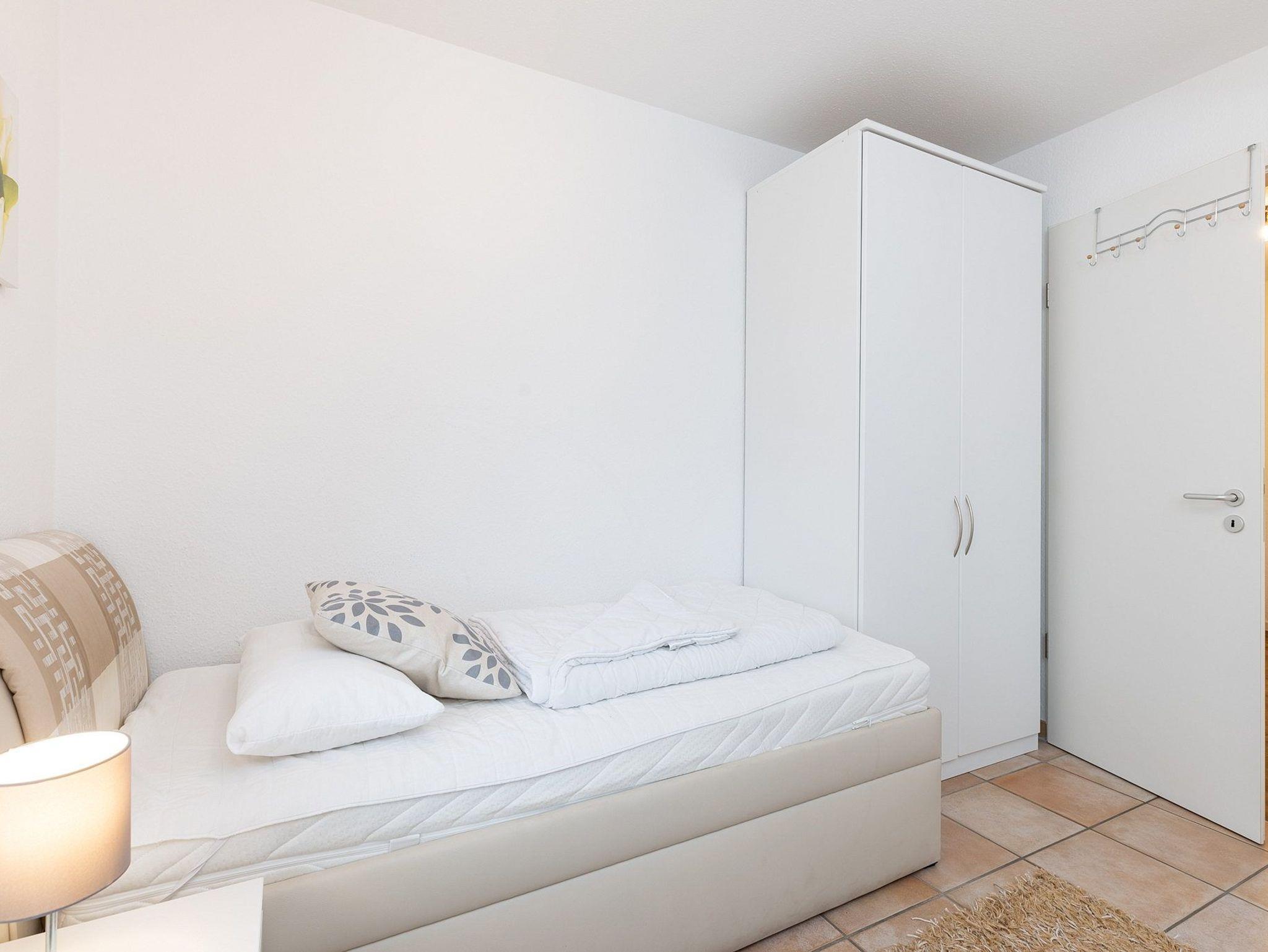 Das gemütliche Kinderzimmer verfügt über ein Einzelbett (90x200cm), eine Kommode sowie einen 2-türigen Kleiderschrank. Das Kinderzimmer ist mit Fliesen ausgelegt und lässt sich durch ein Plissee verdunkeln.
