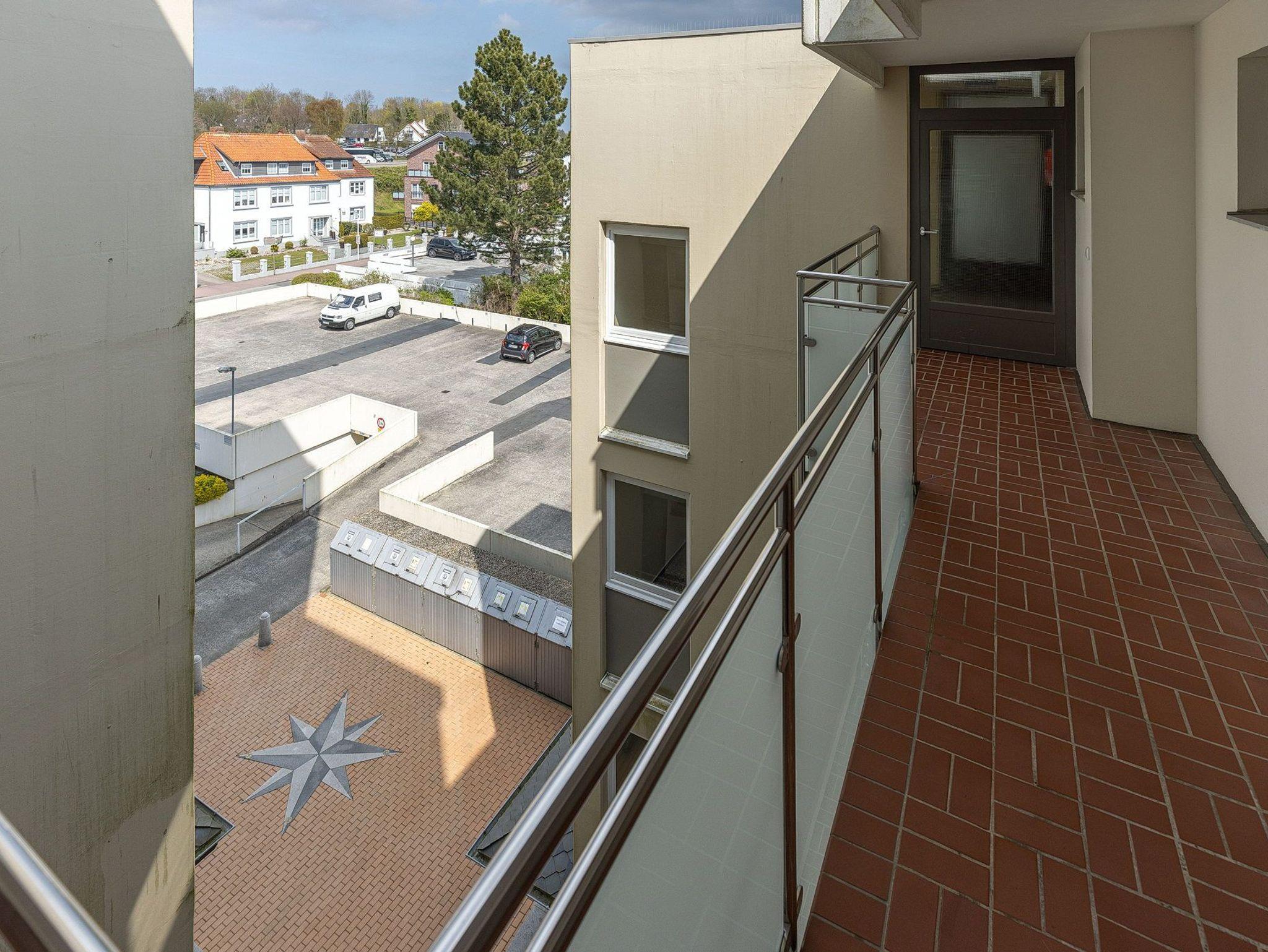Balkon in süd-östliche Richtung mit Markise und schönem Meerblick, PKW-Stellplatz am Haus, Waschmaschine und Trockner befinden sich im Haus und können gegen Gebühr benutzt werden. Kostenloser WLAN-Anschluss. 2 Abstellplätze im geschlossenem Fahrradraum (Gemeinschaftseigentum).
