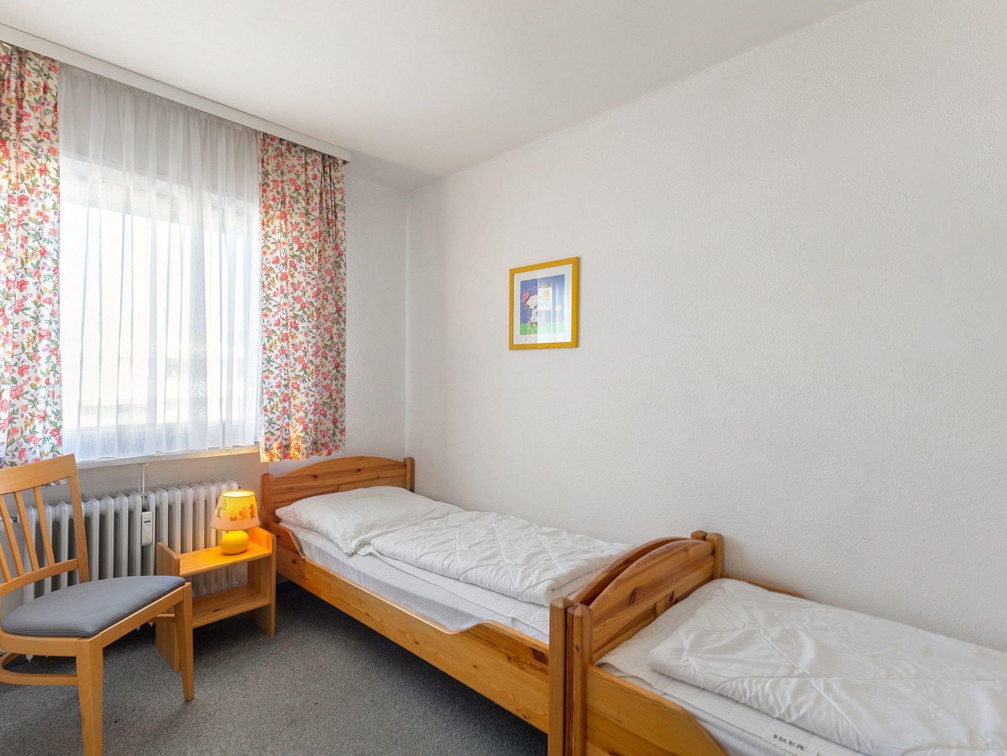 Das freundliche Kinderzimmer ist mit 2 Einzelbetten (je 90x190cm) und einem kleinen Kleiderschrank ausgestattet. Das Kinderzimmer ist mit Teppichboden ausgelegt. Das Fenster zum Laubengang lässt sich durch ein Außenrollo vollständig verdunkeln.