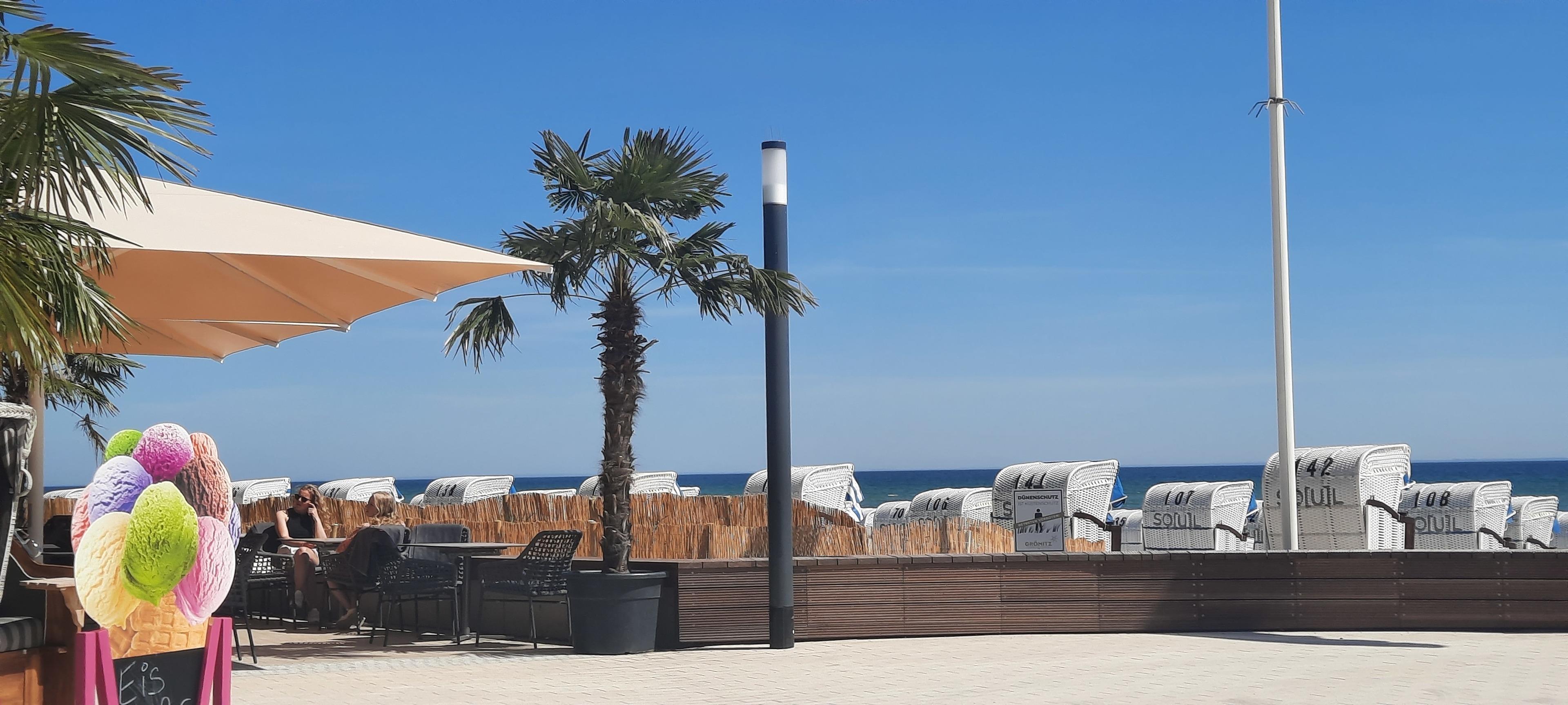 Moderne, ruhige Ferienwohnung mit Dachterrasse und Strandkorb in Grömitz, nur 400 m vom Strand entfernt.