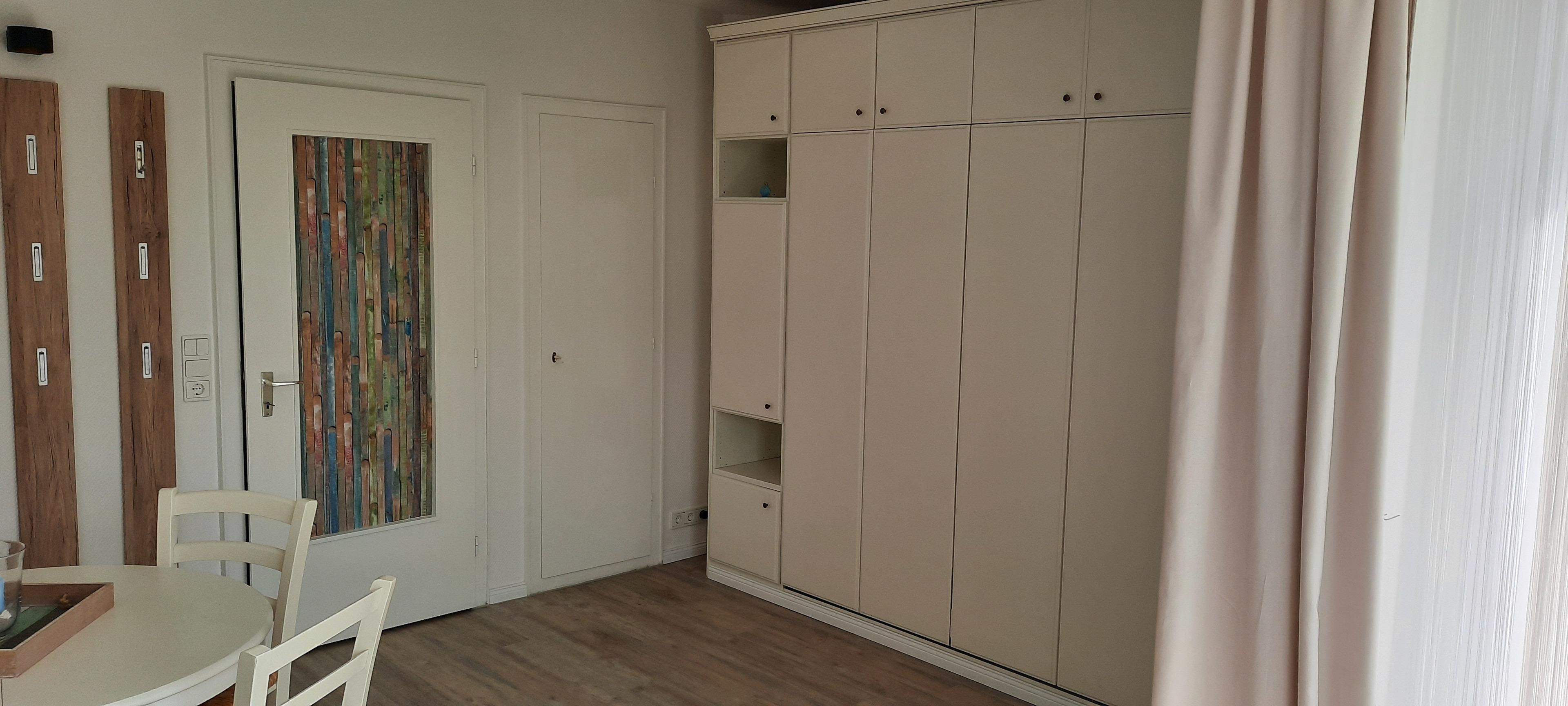Ausstattung u. a. Schrankbett 160 cm x 200 cm. Elektrische Außenrollläden vor dem Wohn-/Schlafraum, TV, Staubsauger, Kühlschrank, kl. Gefrierfach, Backofen, Herd, Toaster, Eier- und Wasserkocher, Mikrowelle, Kaffeemaschine, moderne Dusche, Fön.
