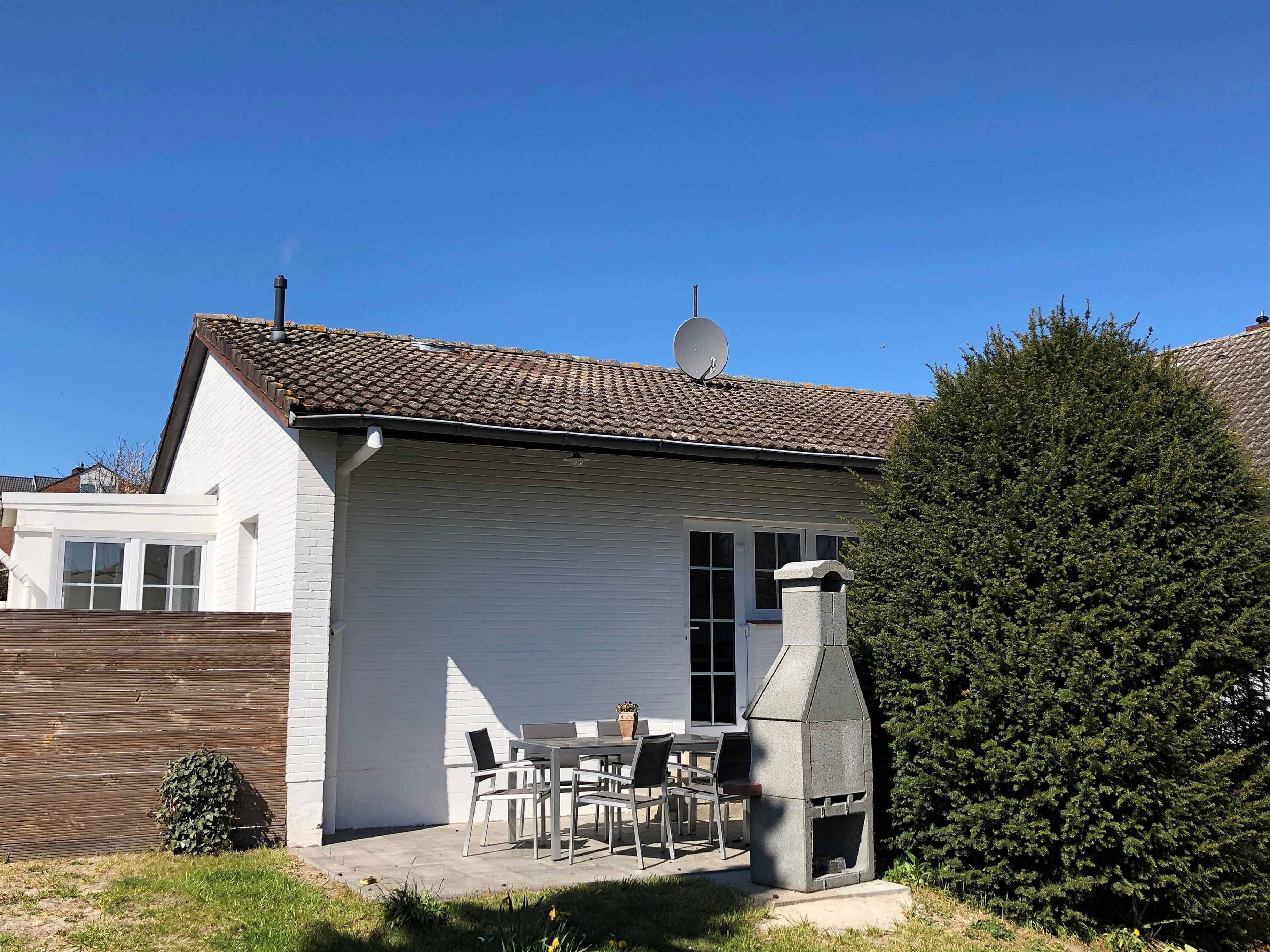 Auf der Terrasse finden Sie Terrassenmöbel, einen Grillkamin und Sonnenliegen. Der Garten ist komplett eingezäunt, sodass auch Ihre Hunde frei laufen können.