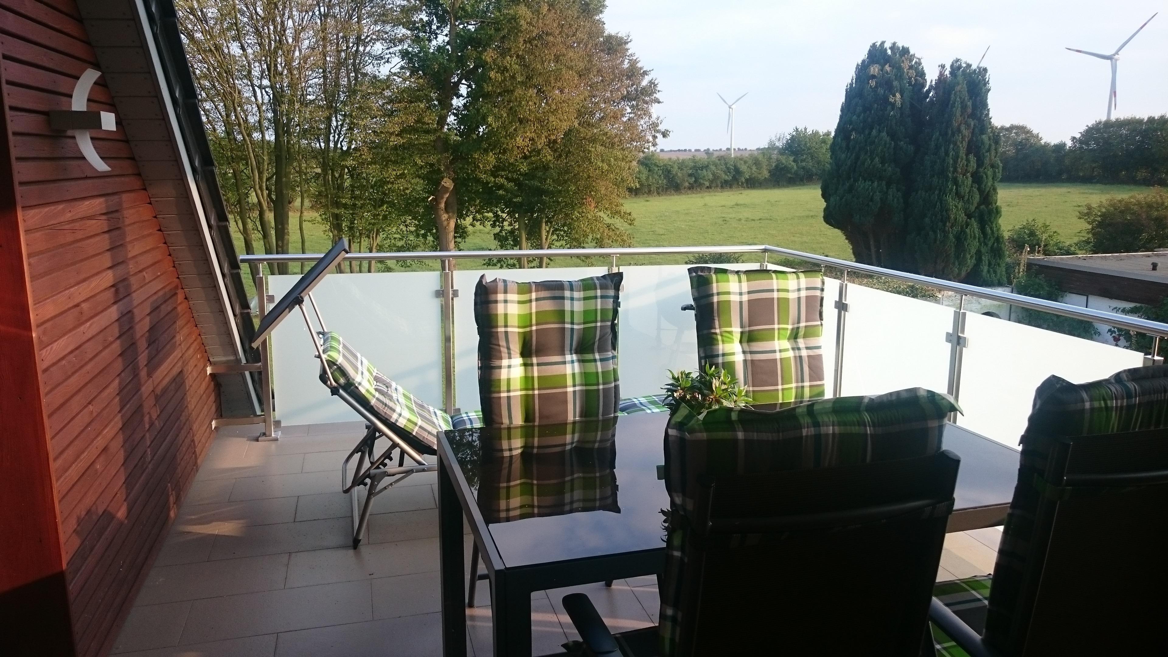 Eine ca. 16 m² große Loggia/Dachterrasse mit Weitblick über Wiesen und Felder lädt zum Grillen, Sonnenbaden und Entspannen oder Tiere beobachten ein.