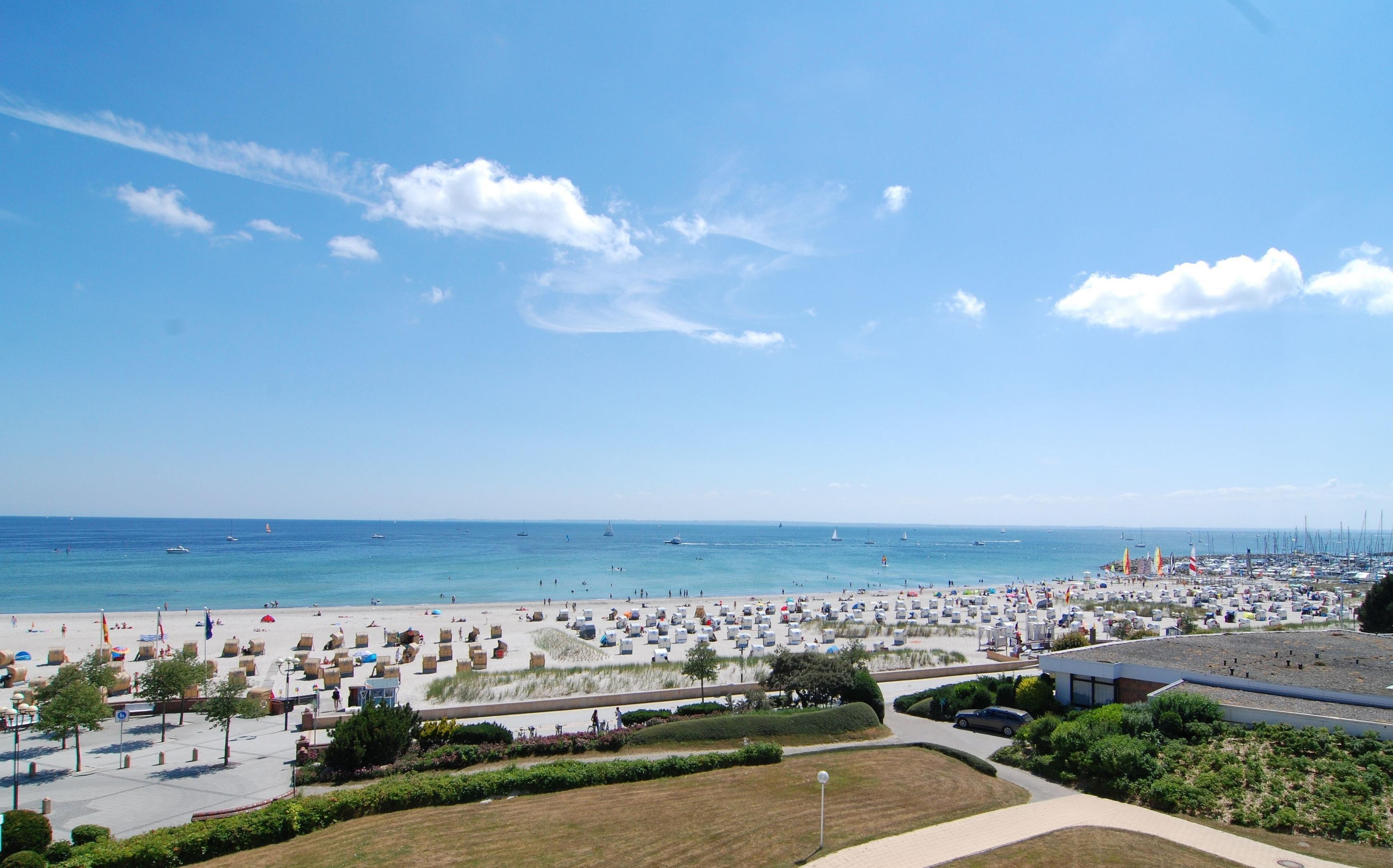 Moderne 2-Zimmer-Ferienwohnung in Grömitz mit Seeblick, Balkon, Schwimmbad und Sauna in Toplage nahe Ostseestrand.
