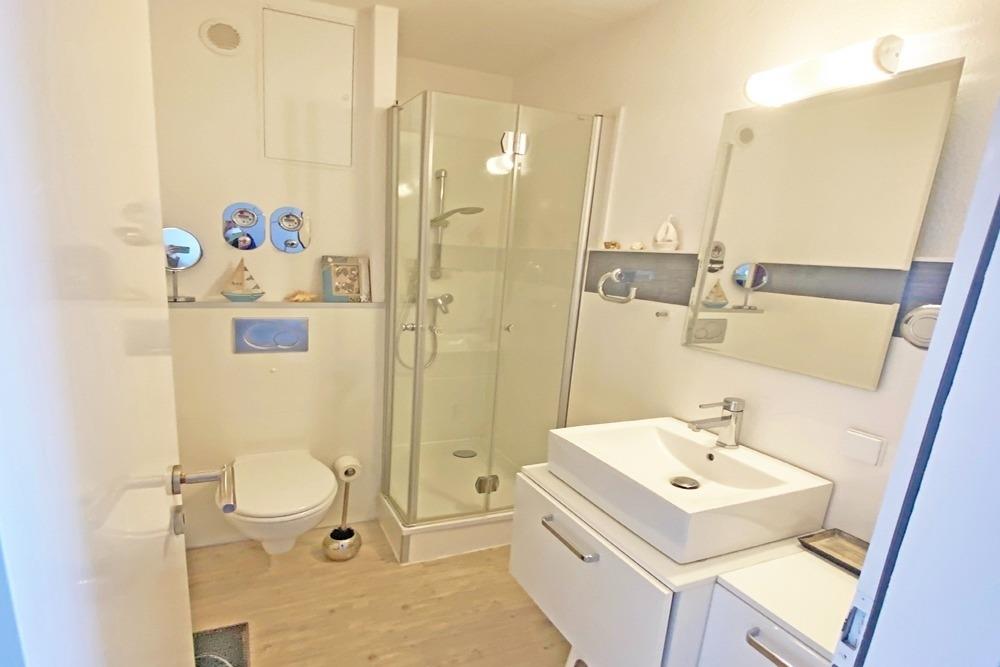 Die frisch renovierten Räume verfügen über eine moderne Dusche, Waschtisch und Haartrockner. Die Küche verfügt über die modernsten Geräte wie Induktionskochplatte, Kombinationsbackofen mit Mikrowelle sowie Geschirrspüler und Kühlschrank. Im Schlafzimmer befindet sich ein bequemes Doppelbett. Hier ist ein zweites Fernsehgerät mit DVD-Player vorhanden. Im Wohnzimmer steht ein bequemes Schlafsofa für zwei Personen. Die Räume sind ausgestattet mit pflegeleichten Laminatböden. Auf dem Balkon gibt es gemütliche Sitz- und Liegemöglichkeiten. Im Kellergeschoß befinden sich moderne Münz-Wasch- und Trockengeräte (Miele). Ein eigener PKW-Stellplatz befindet sich direkt am Haus. Kostenfreies WLAN ist vorhanden.