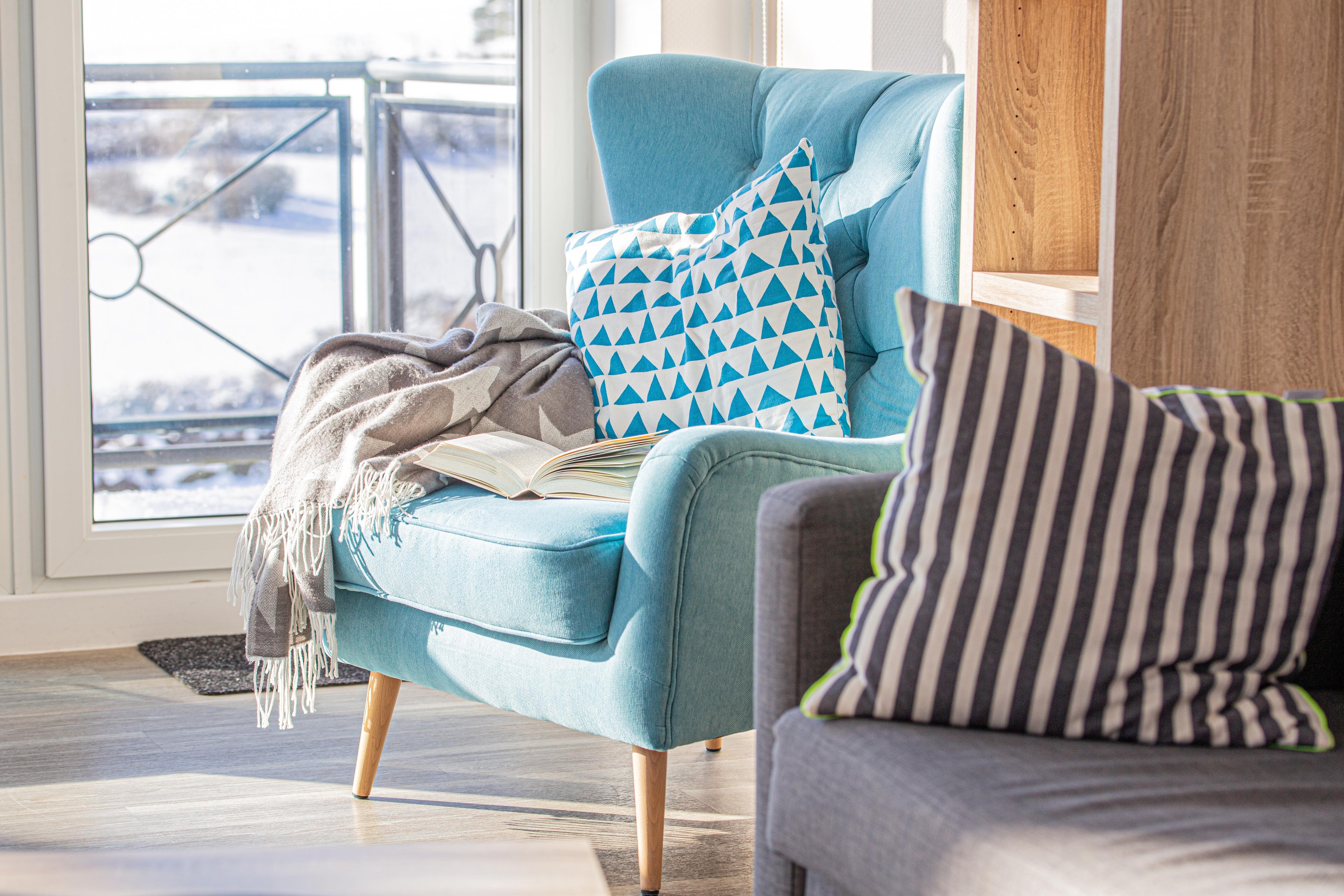 Im großen Wohnraum befindet sich eine kleine Küche, eine Couch mit Sessel und Hocker. Auf dem Schlafsofa können Sie nachts bequem schlafen. Am runden Esstisch können Sie mit dem Blick nach draußen sitzen und Ihre Mahlzeiten einnehmen.