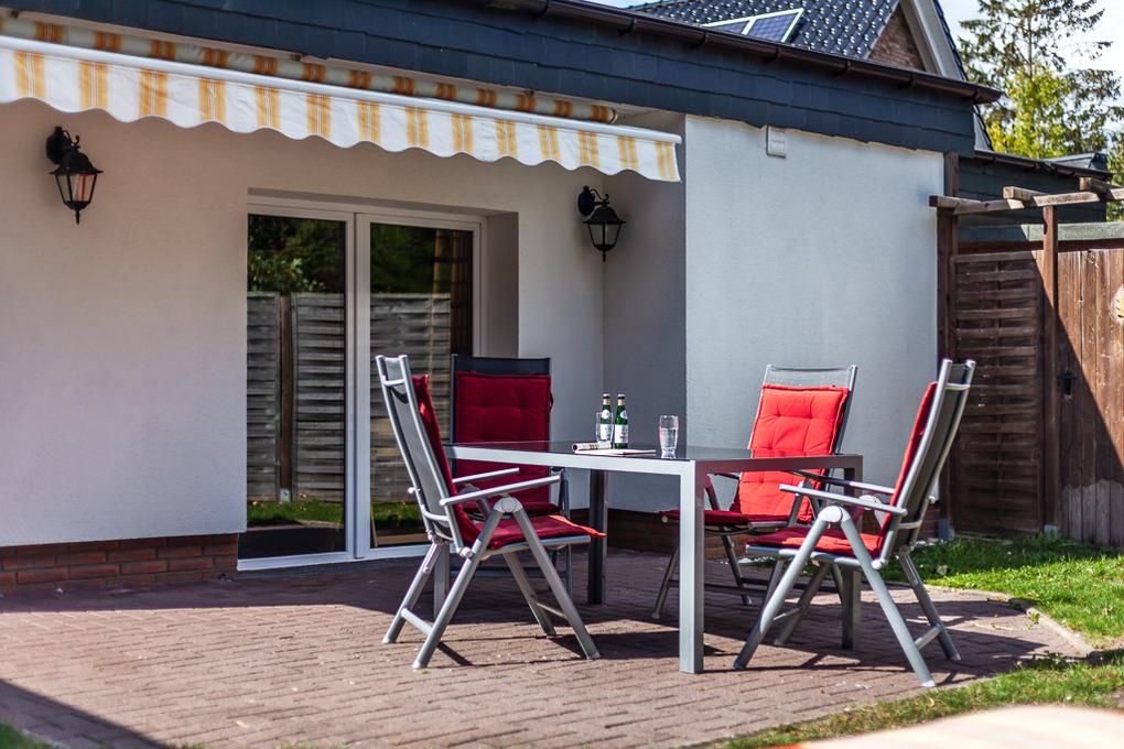 2 komfortable Terrassen mit ausreichenden Sitz- und Liegemöglichkeiten laden zum Morgenkaffee, zum windgeschützten Mittagsschläfchen oder zum gemütlichen Grillabend ein.