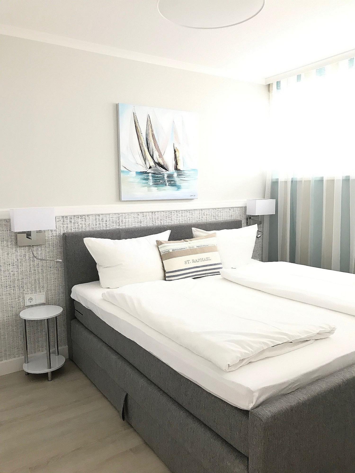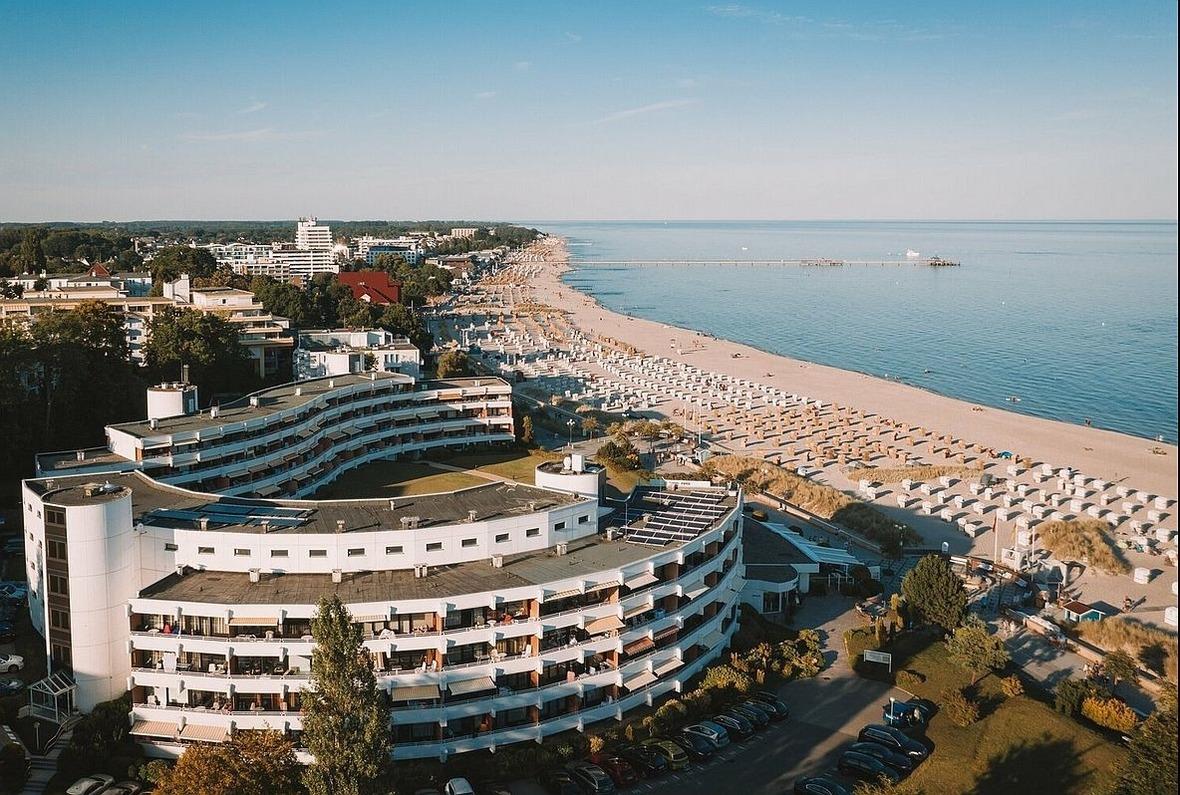 Moderne 3-Zimmer-Ferienwohnung in Grömitz mit großem Südbalkon und herrlichem Seeblick, nur 20 m vom Ostseestrand entfernt.
