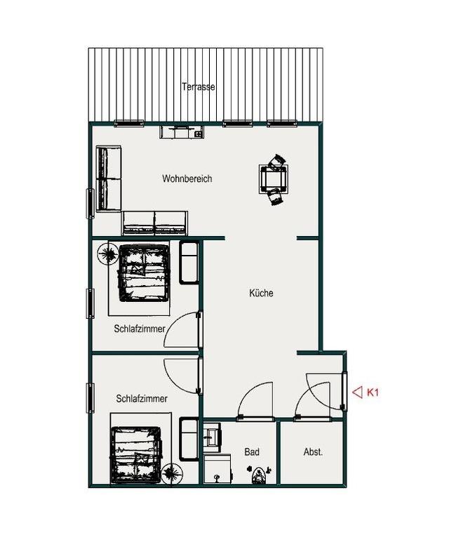 - Wohn-/Schlafzimmer, 23 m², 2 Personen