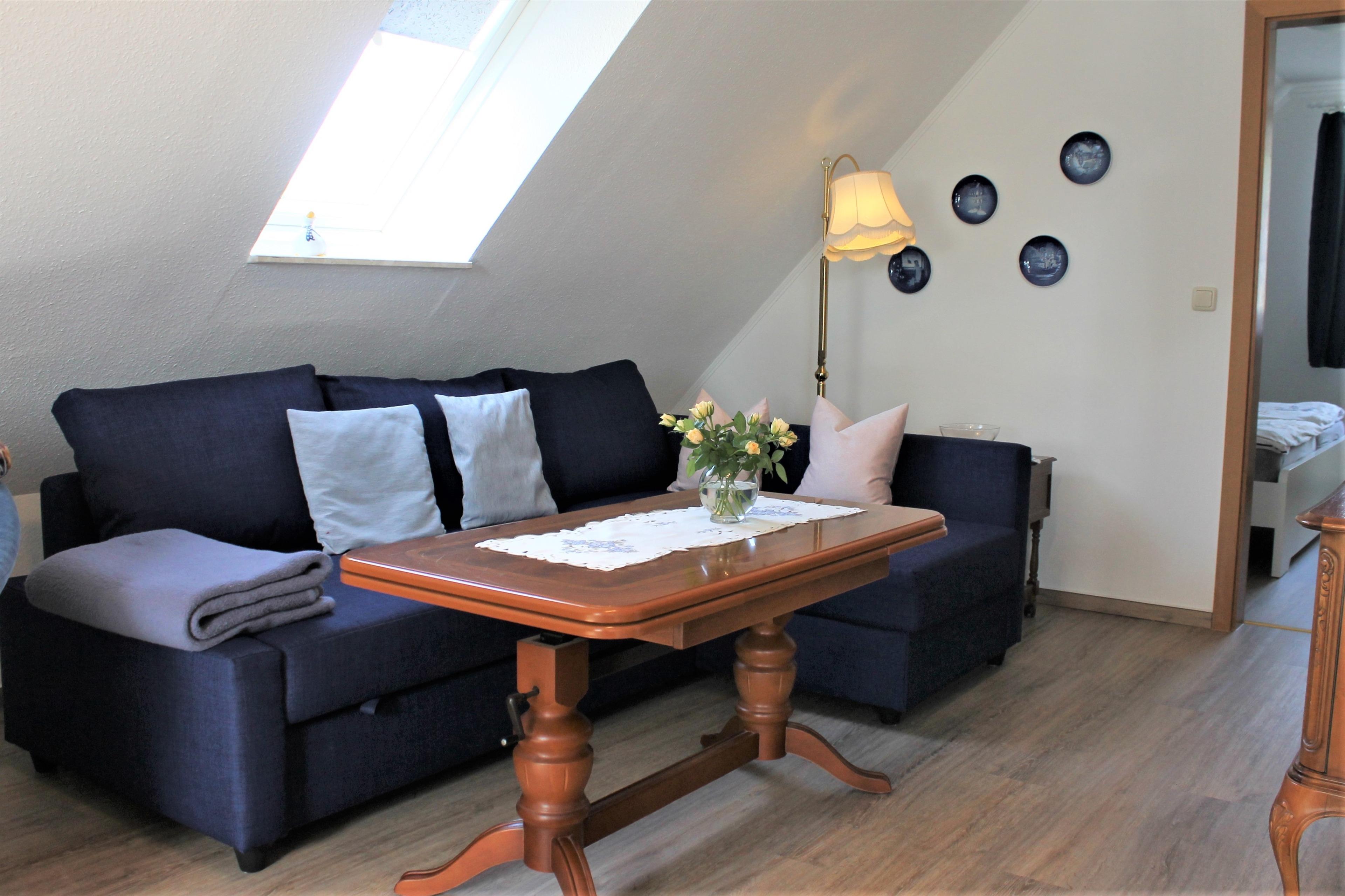 Die circa 50 m² große Ferienwohnung in bester Lage wurde im Frühjahr 2020 renoviert. Sie teilt sich auf in Eingangsbereich, Schlafzimmer, Duschbad und einen großen Wohn- Essbereich mit voll ausgestatteter Küche.