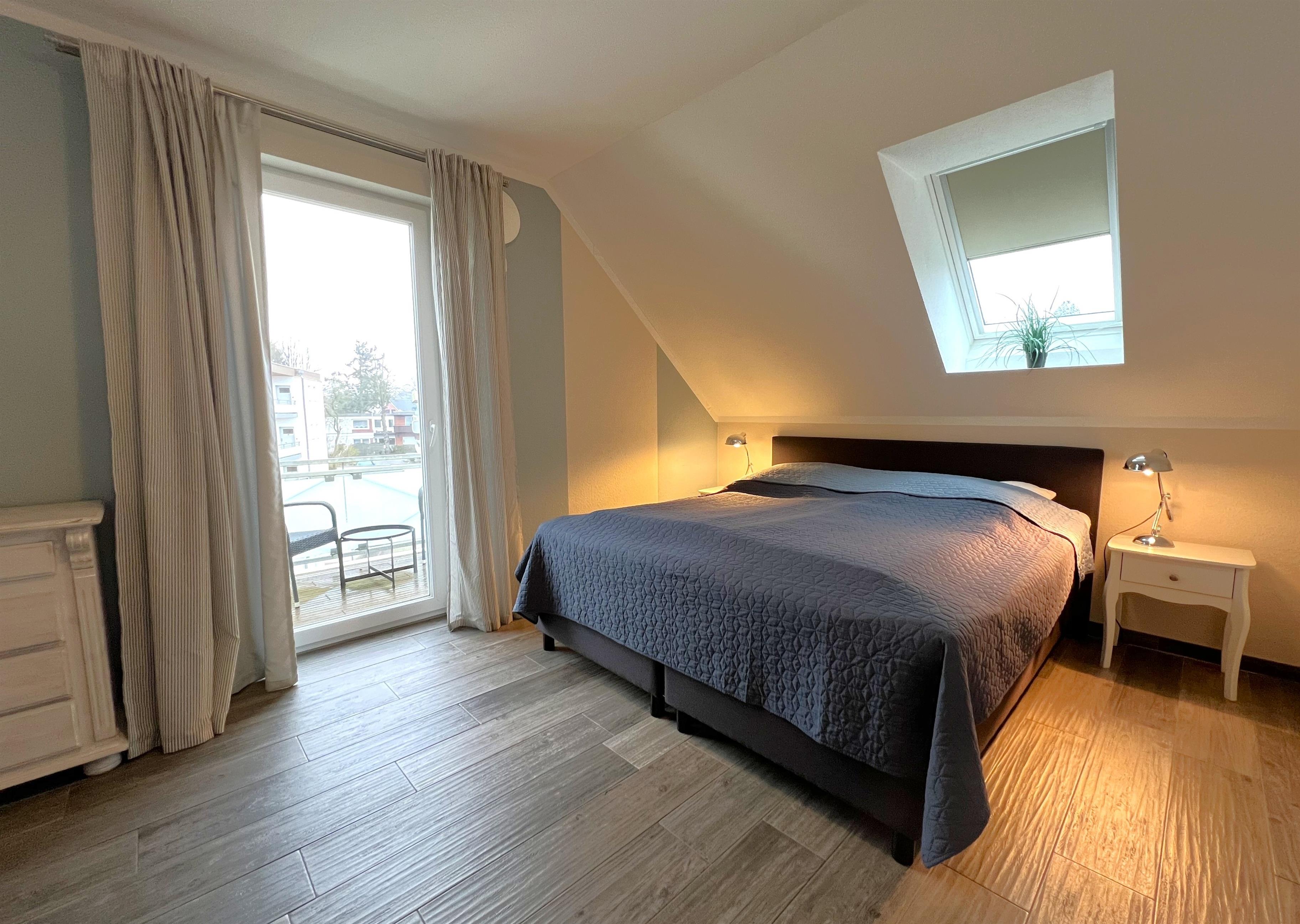 Die hochwertige Küche lässt mit diversen Alltagshelfern wie 4-Platten-Ceranherd, Backofen in angenehmer Arbeitshöhe, Mikrowelle und Spülmaschine kaum Wünsche offen. Abgehend vom Wohnbereich liegt ein weiteres Schlafzimmer, ebenfalls mit gemütlichem Boxspringbett (180x200cm) und Kleiderschrank ausgestattet und verfügt sogar über einen eigenen Balkon mit Südostausrichtung. Genießen Sie hier Ihren Ostseeurlaub mit dem ersten Kaffee am Morgen und der Sonne im Gesicht - Purer Luxus!