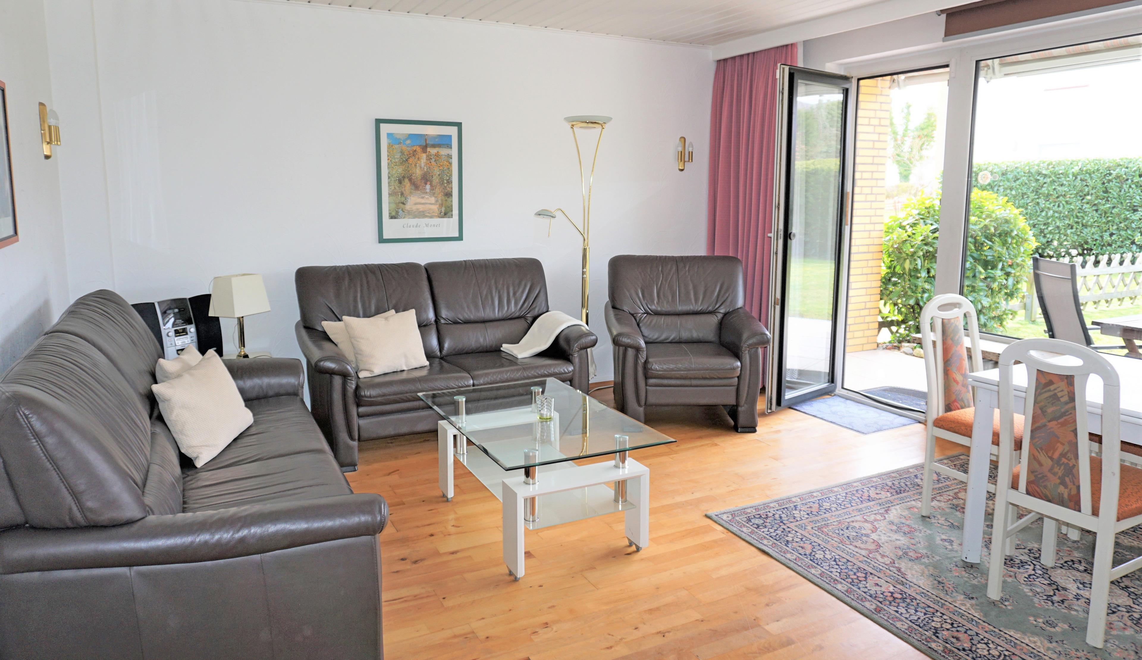 Willkommen in Ihrer gemütlichen 2-Zimmer-Ferienwohnung im Erdgeschoss einer gepflegten Appartementanlage. Die Unterkunft ist ausgestattet mit einem gemütlichen Wohnzimmer, voll ausgestatteter separater Küche, Duschbad mit beheizbarem Handtuchhalter, separatem Schlafzimmer mit komfortablem Doppelbett (2x90x200cm) und geräumigen Kleiderschrank, sowie eigener Terrasse (Süd-Westausrichtung) und eingezäuntem Garten. Auf ca. 45² bietet Ihnen dieses Domizil auf großzügige Weise Platz und Komfort für bis zu 4 Personen.