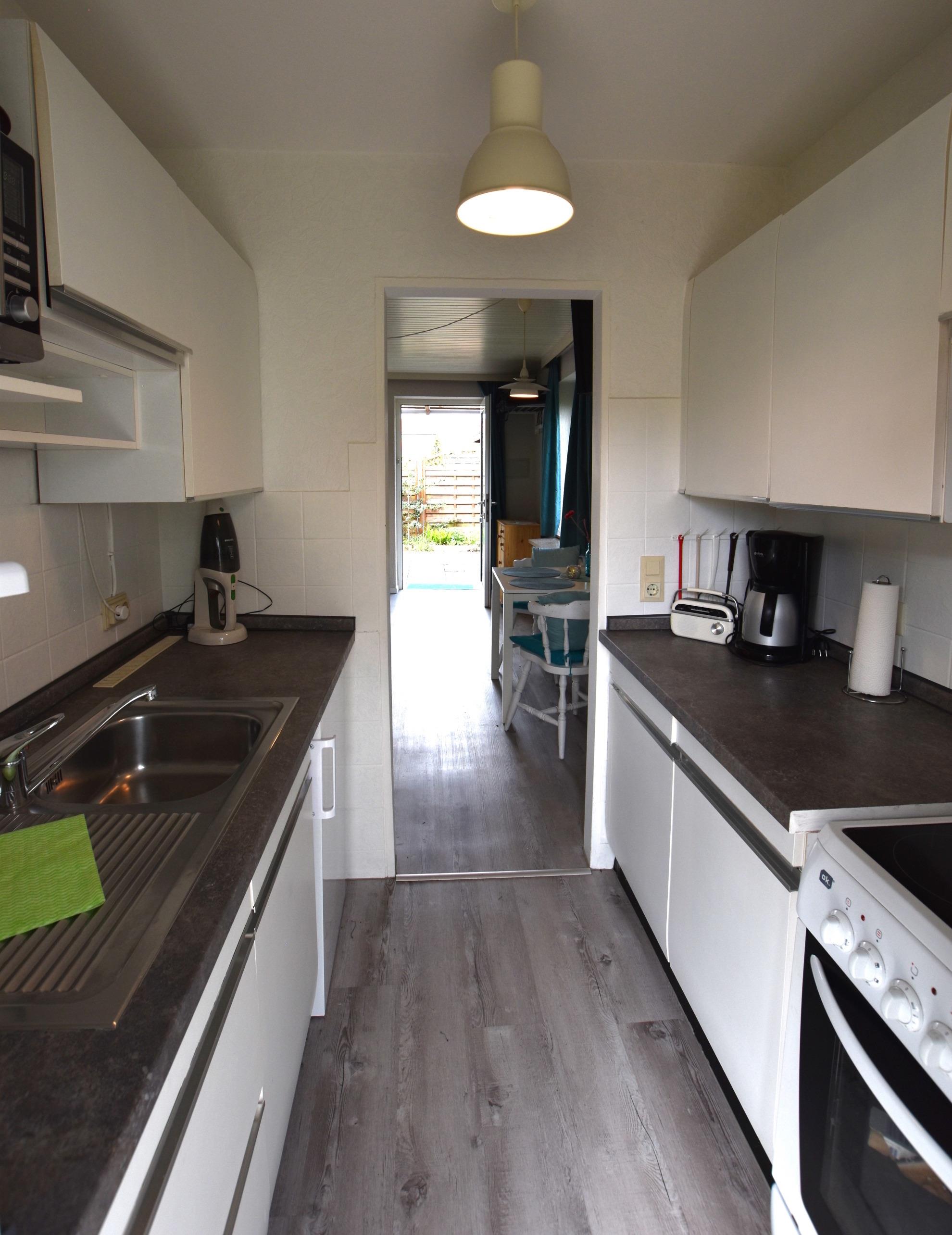 Der Bungalow "Ostseehus" liegt im Erdgeschoss und bietet Platz für max. drei Personen. Die dritte Person darf das Alter von vier Jahren nicht überschreiten. Die Wohnfläche der ca. 26 m² großen Unterkunft verteilt sich auf ein Wohn- / Schlafzimmer, eine kleine separate Küche sowie ein Tageslicht-Badezimmer. Der Wohnraum ist mit einem gemütlichen Kojenbett, einem Essplatz, TV sowie einem Kleiderschrank versehen. Das Bett kann von einer Sitzgelegenheit zu einem Doppelbett umfunktioniert werden (Maße des Bettes: 1,60 x 2,00 m). Vom Wohnbereich aus haben Sie Zugang zur großen möblierten Terrasse, der große Garten steht für Sie zur Verfügung. Ein Grill, Sonnenliegen und eine Markise sind vorhanden. Die separate kleine Küche ist u.a. mit Kaffeemaschine, 4-Plattenherd und Toaster ausgestattet. Das Tageslicht-Badezimmer verfügt über eine Dusche, einen Waschtisch und ein WC. Nur vier Gehminuten zum Strand.