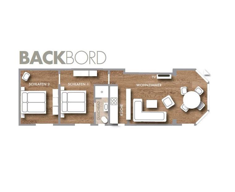 Unsere Wohnung "Backbord" ist eine 3-Zimmer Wohnung mit etwa 56 m² und für eine 4-köpfige Familie bestens geeignet.