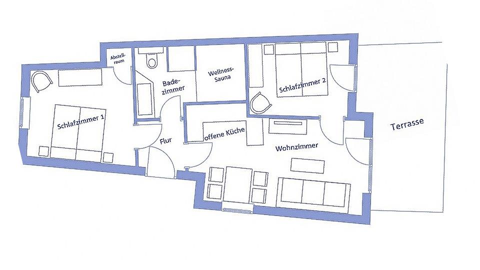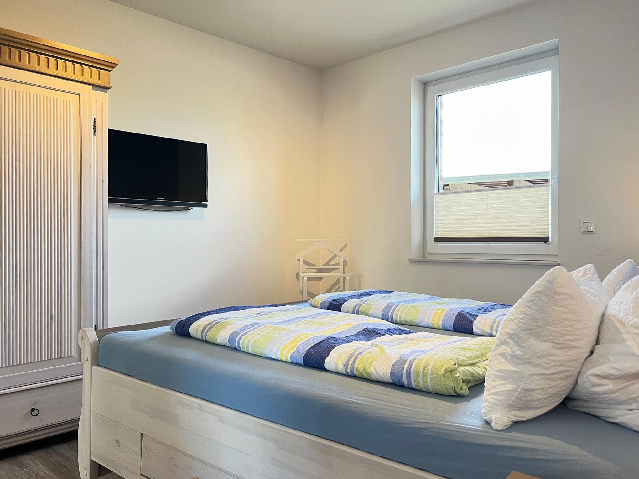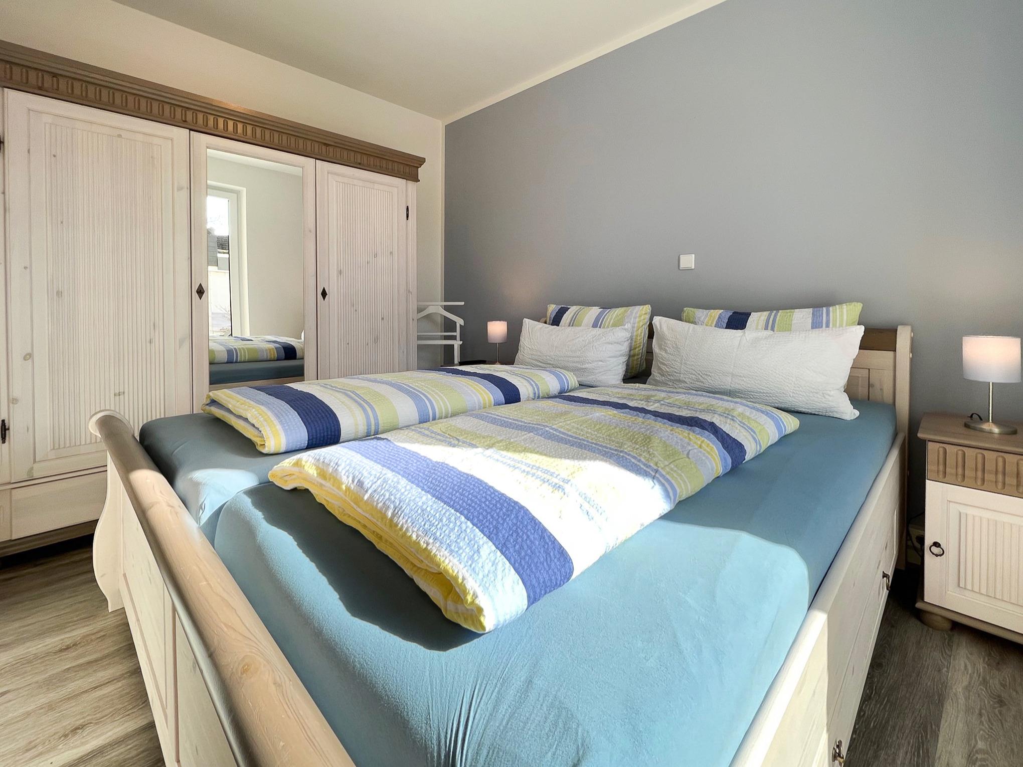 Beide Schlafzimmer sind mit einem Doppelbett, Schrank und einem Flachbild-TV ausgestattet. Aus dem 2. Schlafraum gelangt man direkt auf die 15 qm große Terrasse und beginnt den Tag mit belebender Ostsee-Sonne.