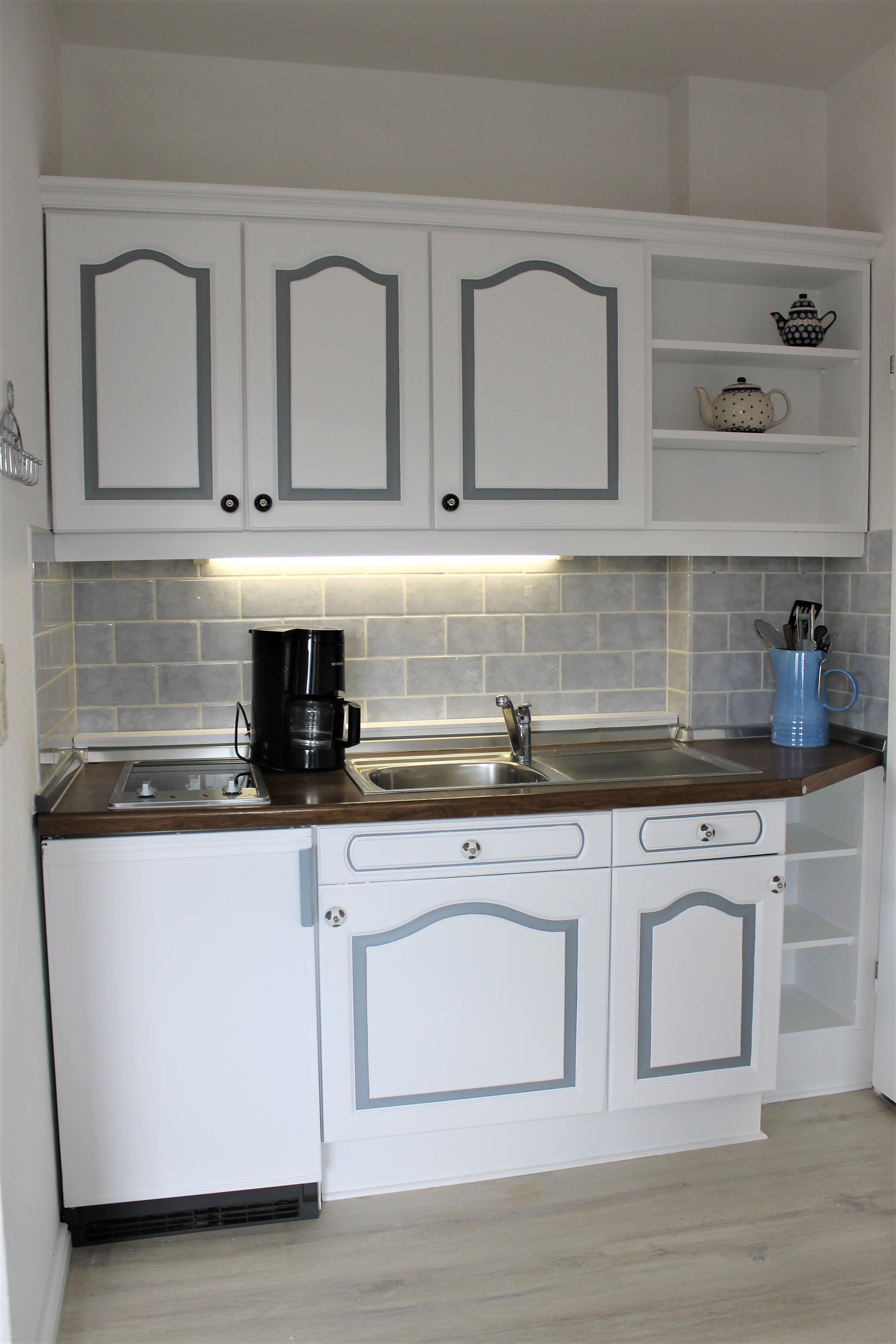 Die gut ausgestattete Küche besitzt unter anderem einen Toaster und eine Kaffeemaschine.