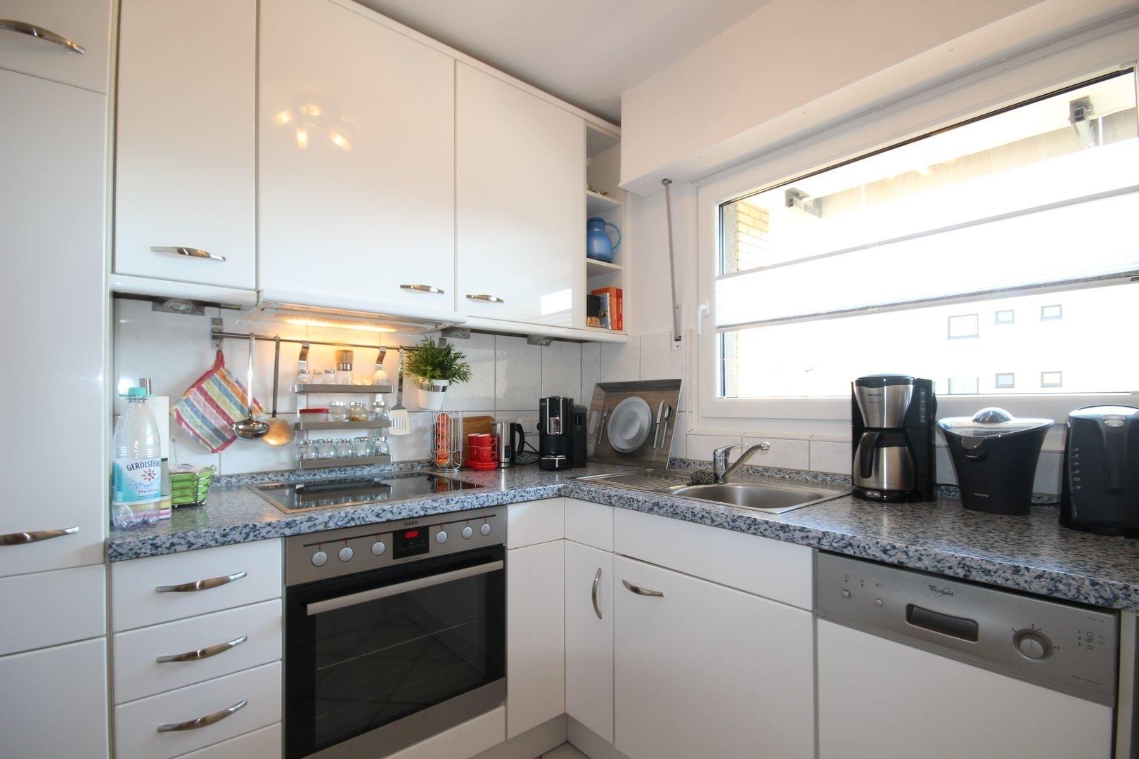 Die moderne Einbauküche ist mit Kühlschrank / Gefrierfach, Ceranfeld / Backofen, Geschirrspülmaschine & allen üblichen Küchengeräten sehr gut ausgestattet.