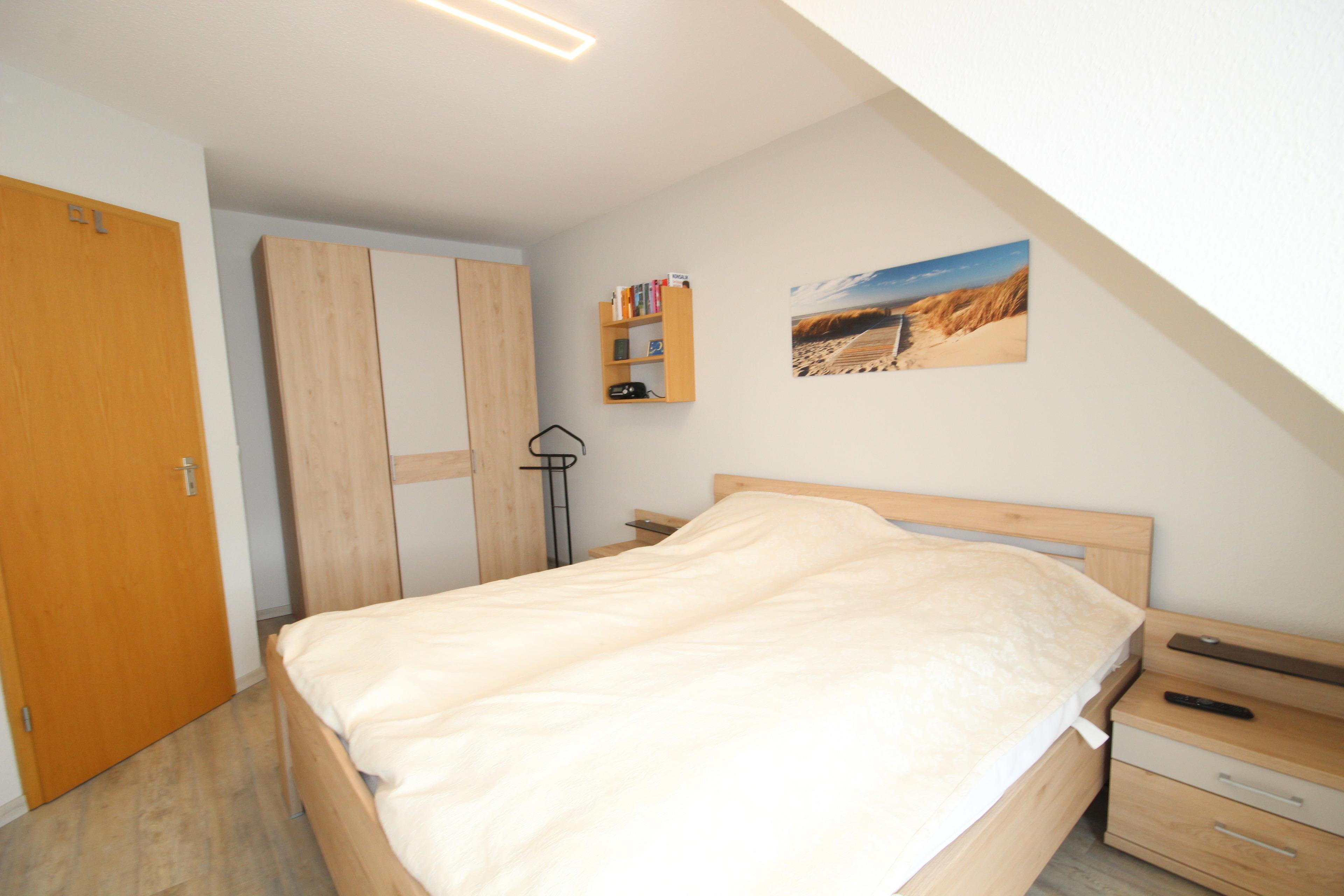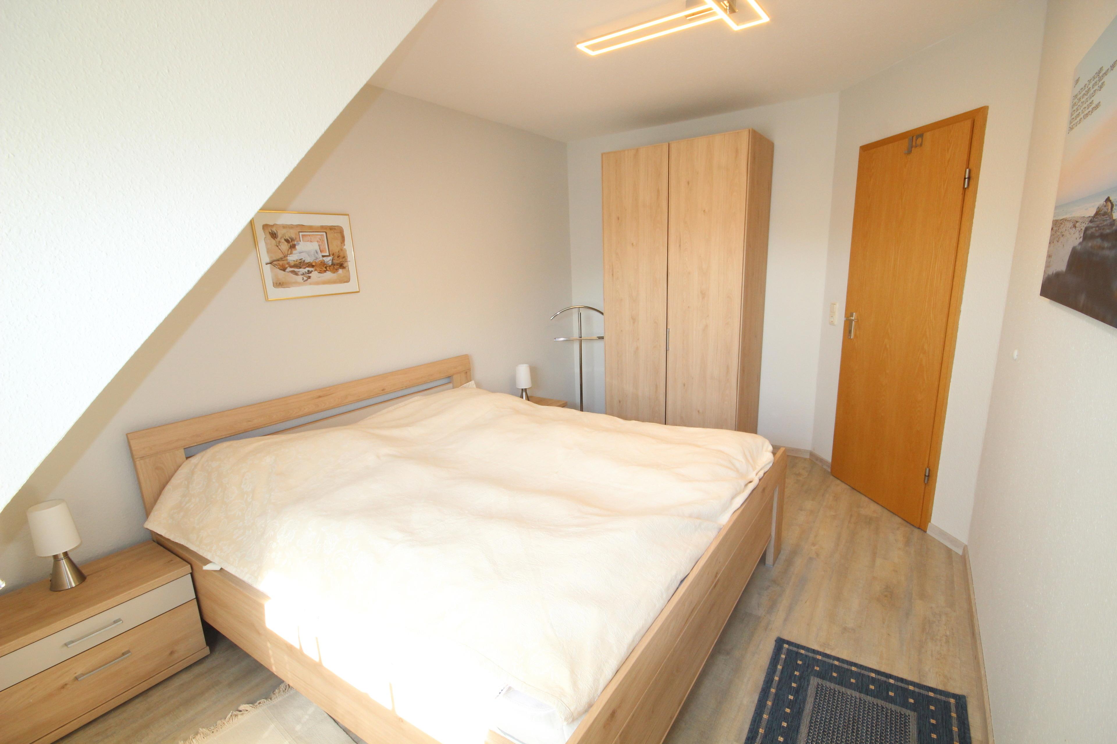 OG: 1 Schlafzimmer mit Doppelbett (2x 90x200cm) & Kleiderschrank.