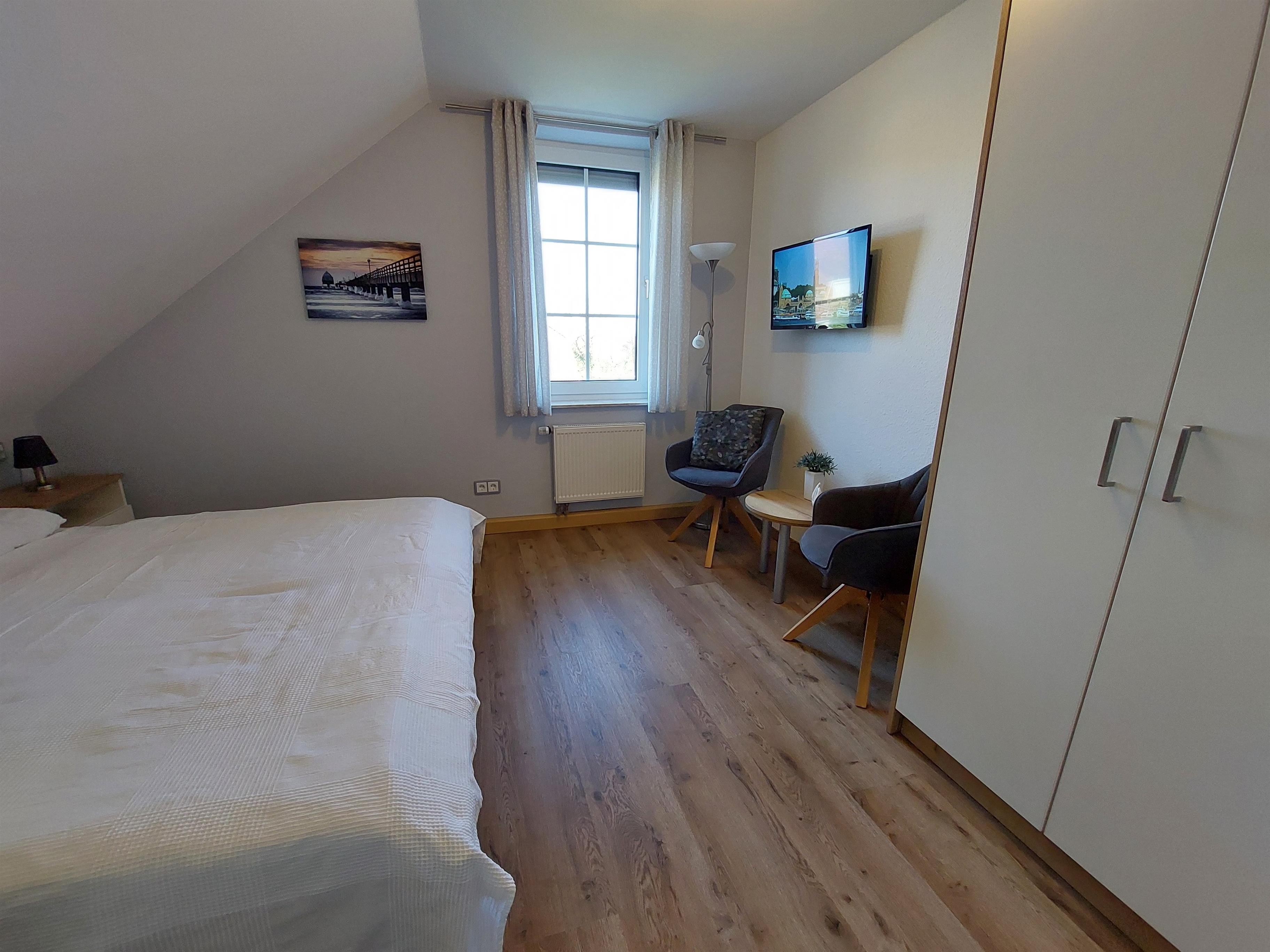 Im 2. Schlafzimmer befinden sich ein Doppelbett, Nachttische, Sessel, Tischchen, Kleiderschrank & Sat-TV.