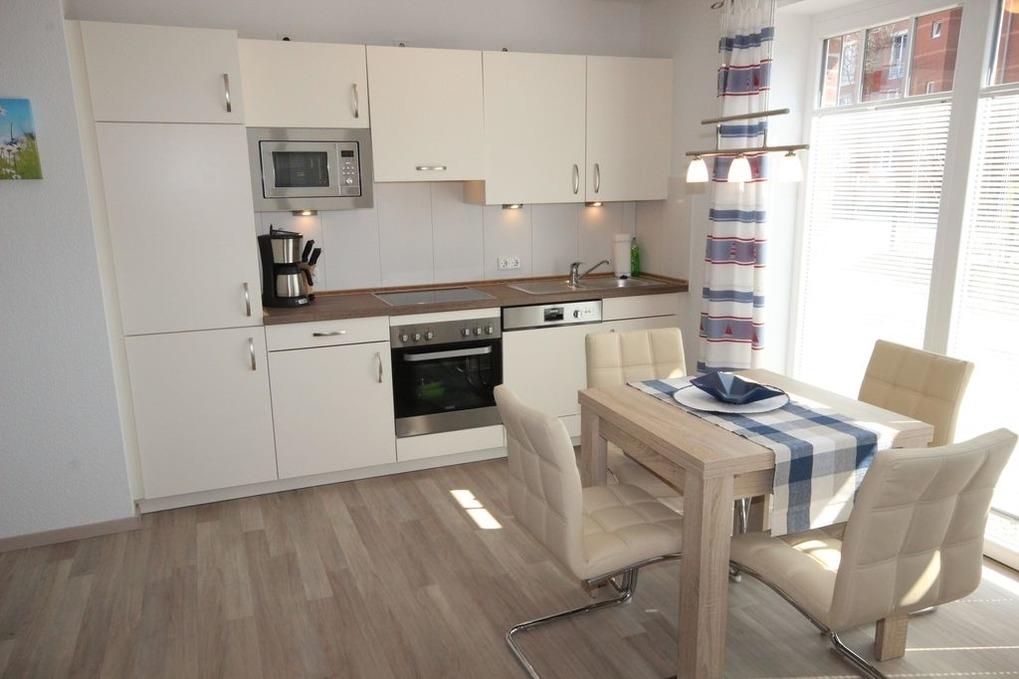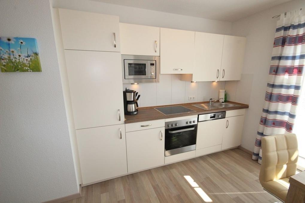 Die offene Küche mit Geschirrspüler, Mikrowelle, Cerankochfeld und Backofen, Kühlschrank/ Gefrierfach & alle üblichen Küchengeräte ist sehr gut ausgestattet.